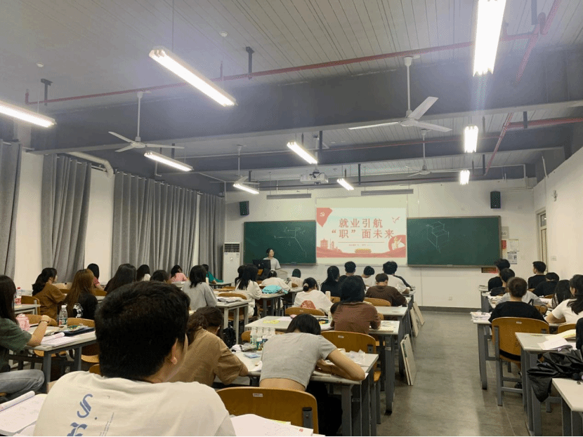 各班团支书播放了近几年来有关大学生就业择业现状的相关视频,并就当代大学生的就业现状和对社会各职业的分享自己的看法和思考。接下来辅导员唐夕雁老师向同学们介绍了“三支一扶”、“大学生志愿服务西部计划”等政策,在引导同学们到基层和西部地区就业的同时,帮助同学们树立正确的就业观。最后团支书组织大家开展了“专业学习与末来就业”话题讨论,帮助同学们锚定自身坐标,认清就业方向。