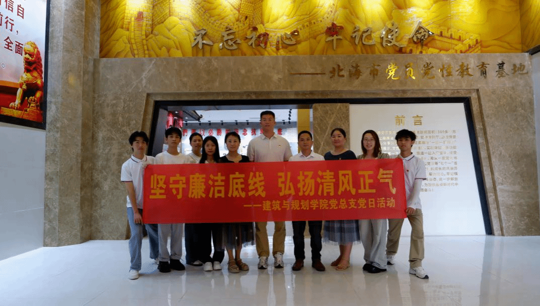 (文/周晓卉 图/赵胜兰 )为进一步加强建筑与规划学院学生党支部党建品牌建设,提升党建工作质量,努力打造”廉洁+服务”型学生党支部。2024年7月5日,我院学生党支部全体师生赴北海市党员党性教育基地进行参观调研。