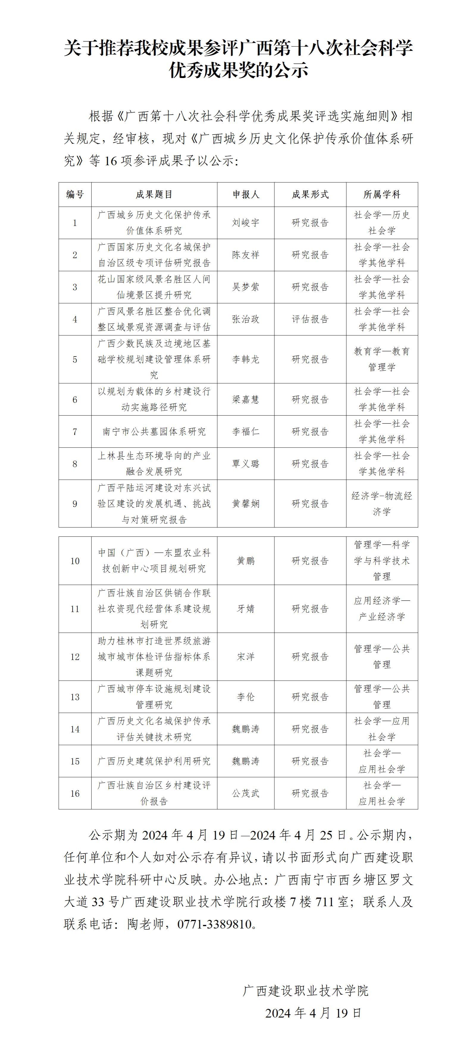 关于推荐伟德国际官网成果参评广西第十八次社会科学优秀成果奖的公示