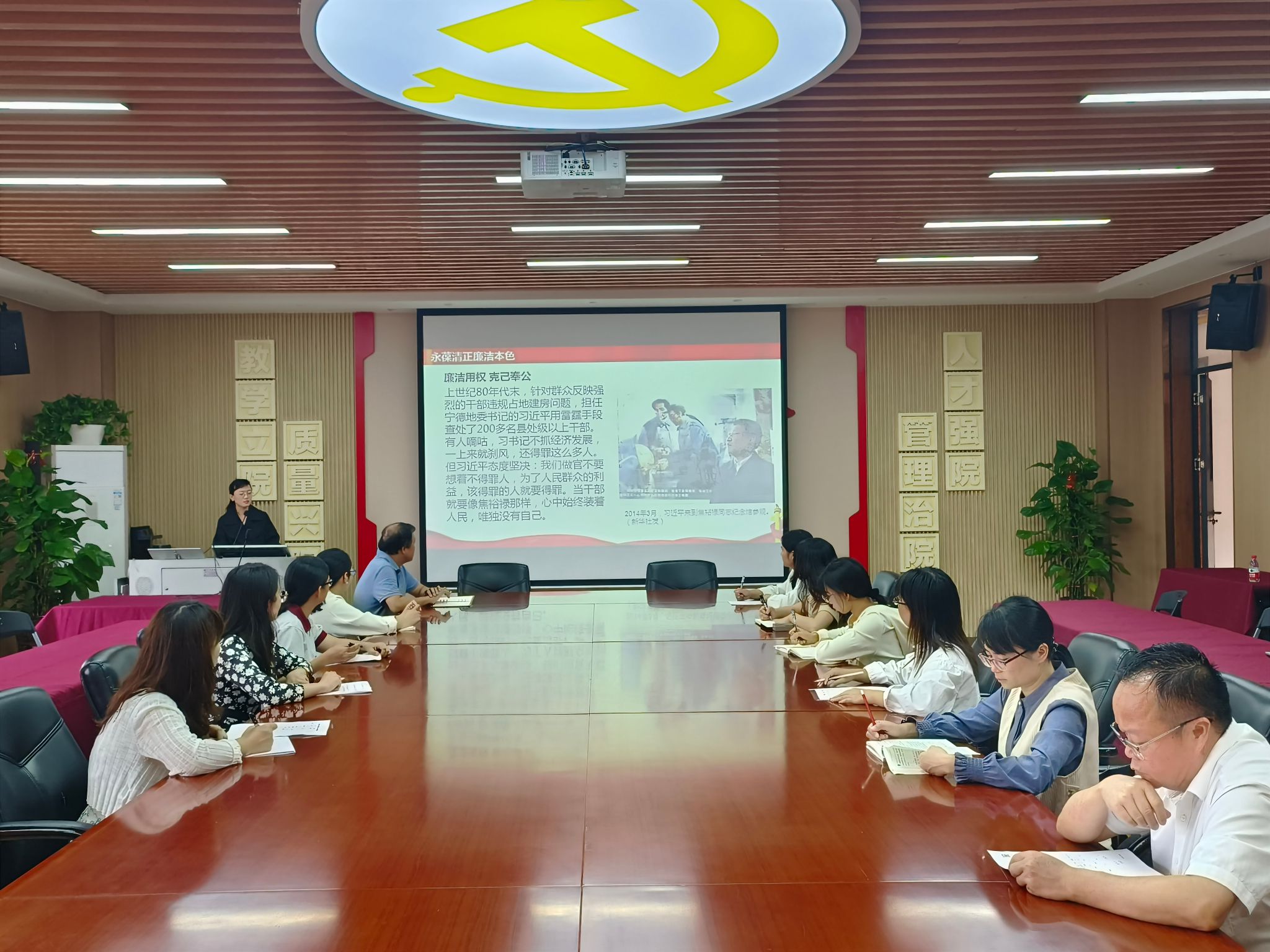 党支部书记李倩同志从认识廉洁、感知廉洁、践行廉洁三个方面入手,围绕“坚持高线 守住底线”、“廉洁用权 克己奉公”、“尚俭戒奢 艰苦奋斗”、“正心修身 涵养文化”四个方面的内容为支部党员教师上了一堂深刻透彻的廉政专题党课。李倩同志特别强调,要遵守政治纪律。严格执行习近平总书记提出的“五个必须、五个决不允许”的要求,经常补足精神之“钙”,时刻绷紧纪律规矩这根弦,筑牢廉政思想根基,做到忠诚干净担当,全面营造风清气正的教学环境。