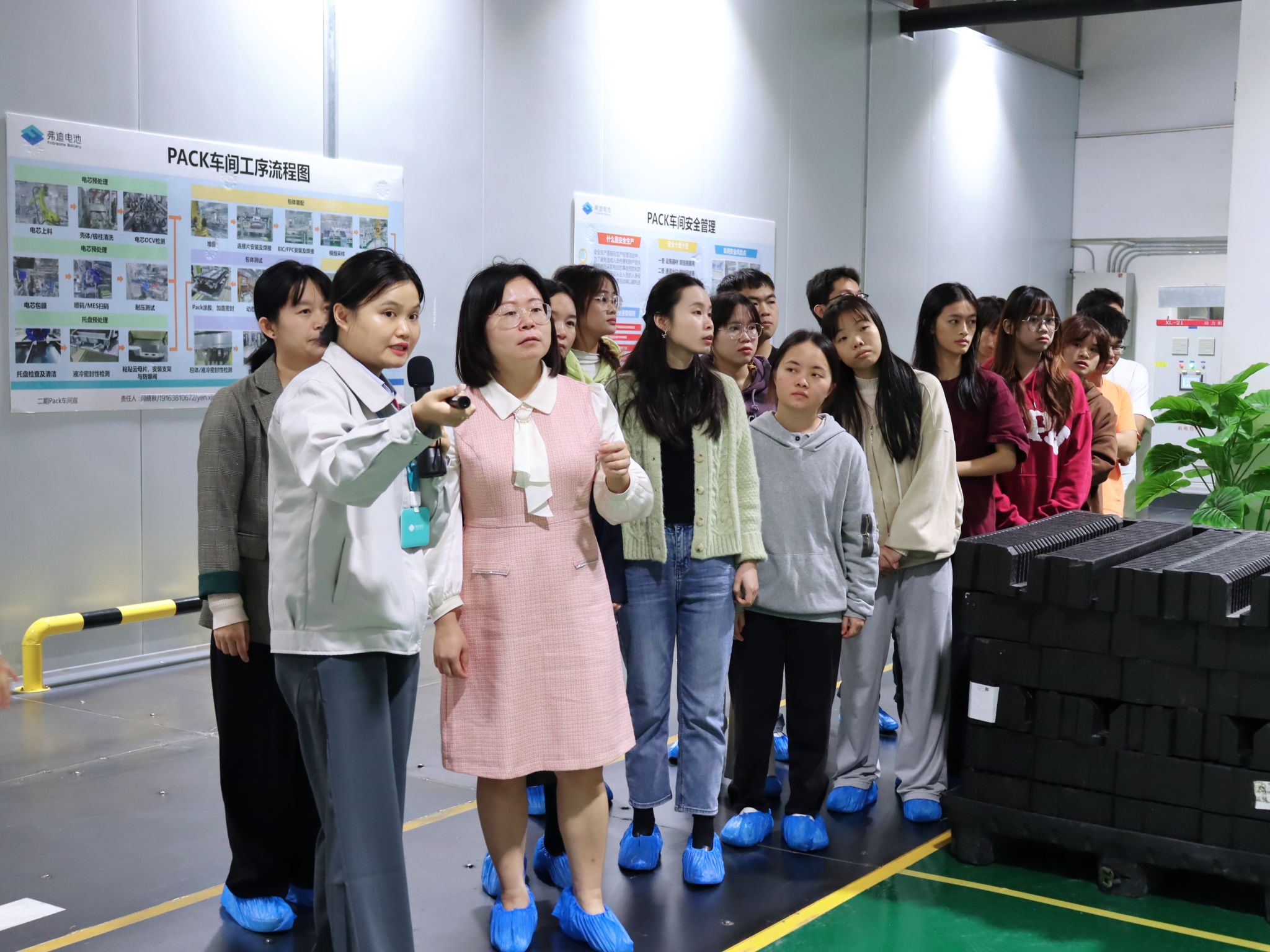 在该公司专业人员的引导下,师生们参观了电池的核心生产车间,在生产线旁观摩技术工人娴熟地操作先进的生产设备,自动化机器人完成大部分的装配工作,深入了解电池的生产工艺和严格的质量控制手段。在与公司负责人和一线工人的交流中,师生们深入学习了解广西东盟弗迪电池有限公司在推动我国新能源汽车产业的可持续发展中做出的突出贡献,并深切感受到了公司对员工的深厚关怀及其对卓越品质的执着追求,同时也被工人们的工匠精神和团队协作精神所打动。