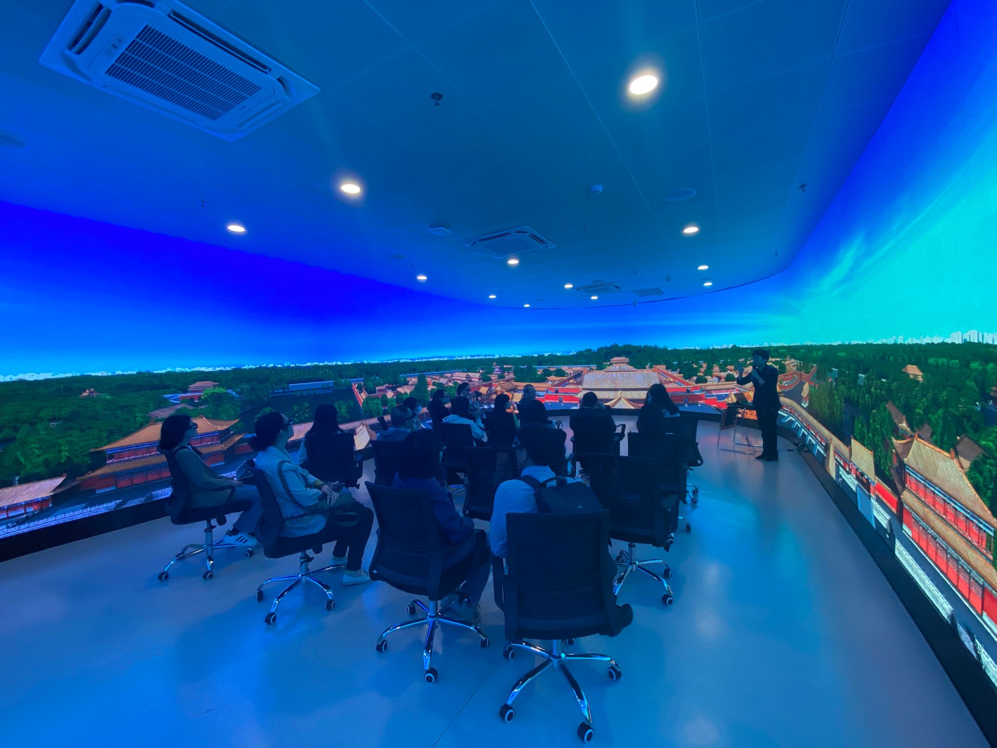 在赵胜营副院长的陪同下,杨文院长一行参观了伟德国际官网党建思政教育基地的党史教育馆、虚拟仿真教学中心和360度沉浸式体验馆,详细了解了伟德国际官网在思政课教育教学中运用虚拟仿真技术的经验做法。