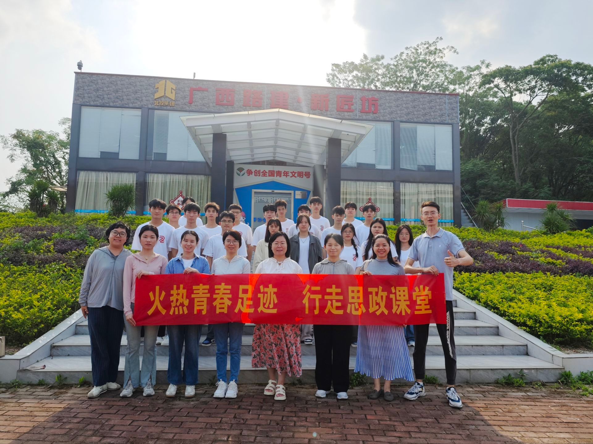 马克思主义学院5月9日讯(图/甘麒燕 文/潘柳虹)为更好地学习贯彻习近平总书记视察广西时的重要讲话精神,切实理解广西高质量发展的深刻要义,完整、准确、全面贯彻新发展理念,5月7日,马克思主义学院教工第二党支部与青年马克思主义者协会同学前往飞龙大桥展开了一场别开生面的桥梁建设探索之旅,以现场学习的形式开展主题党日活动。