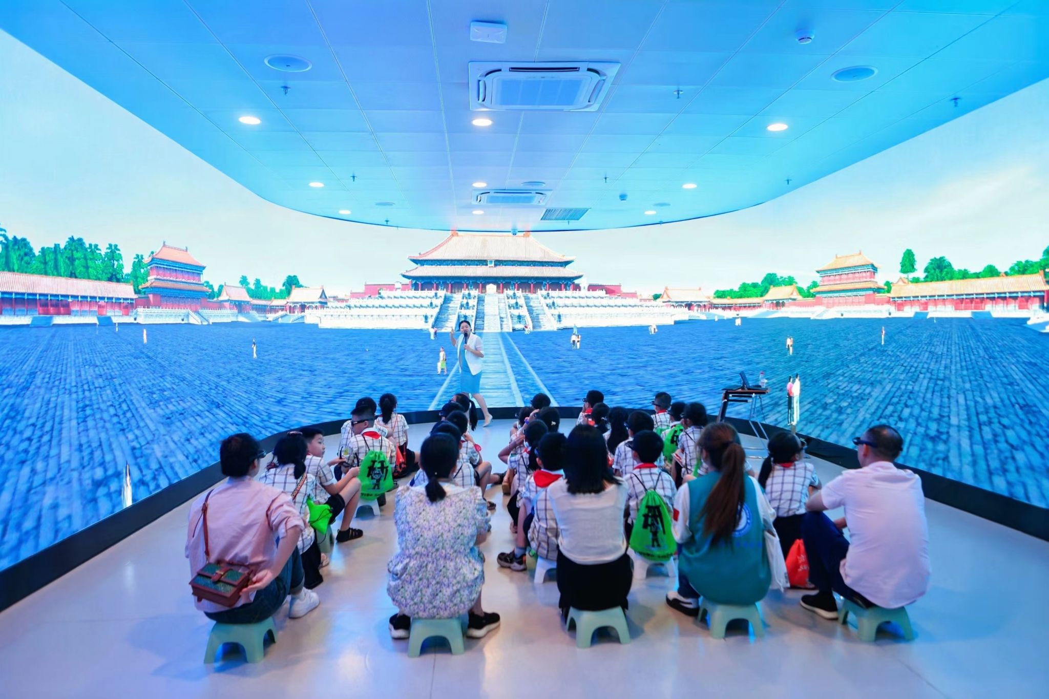 图四:小朋友们在360度沉浸式教育基地领略古建筑之美