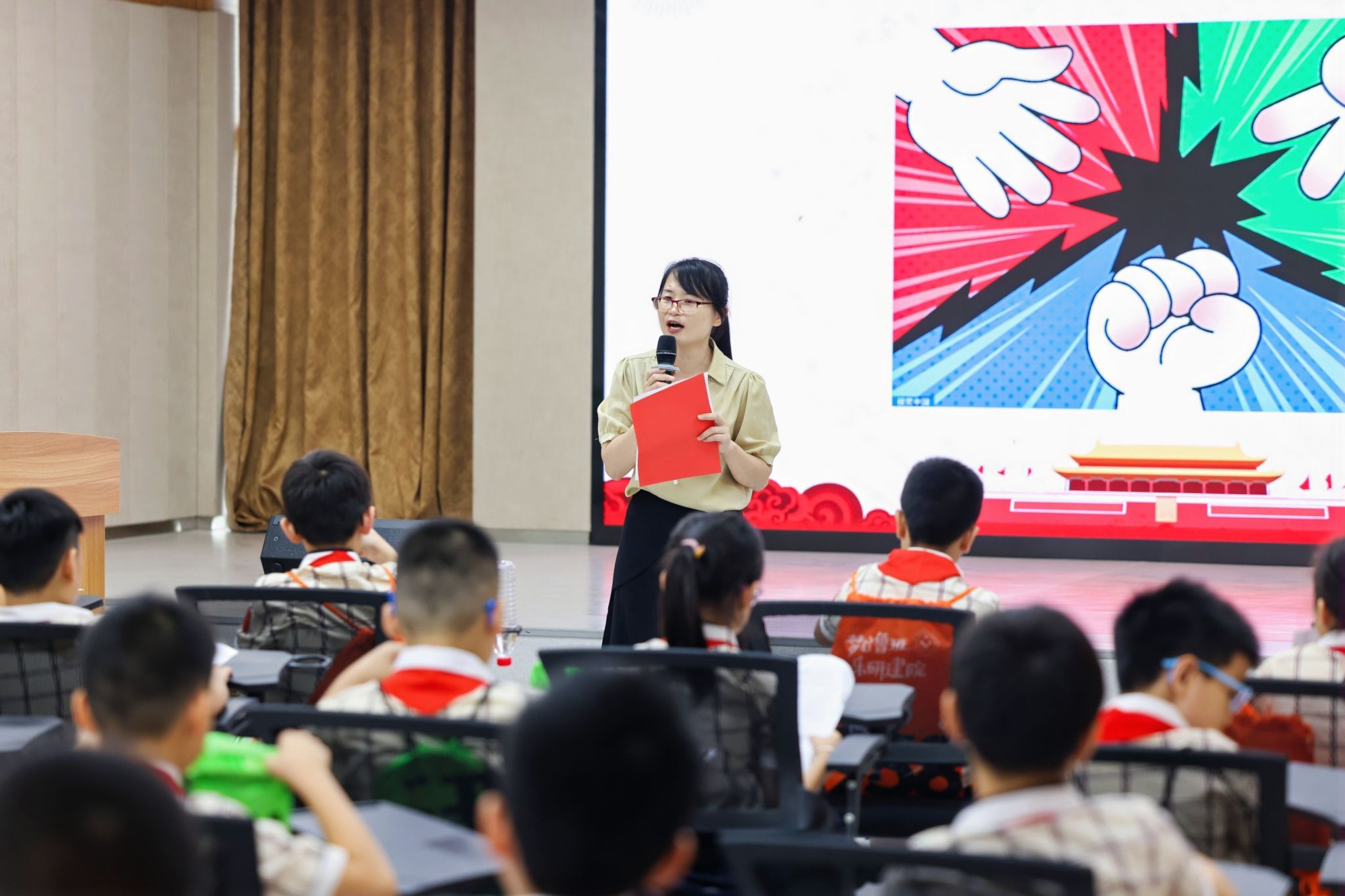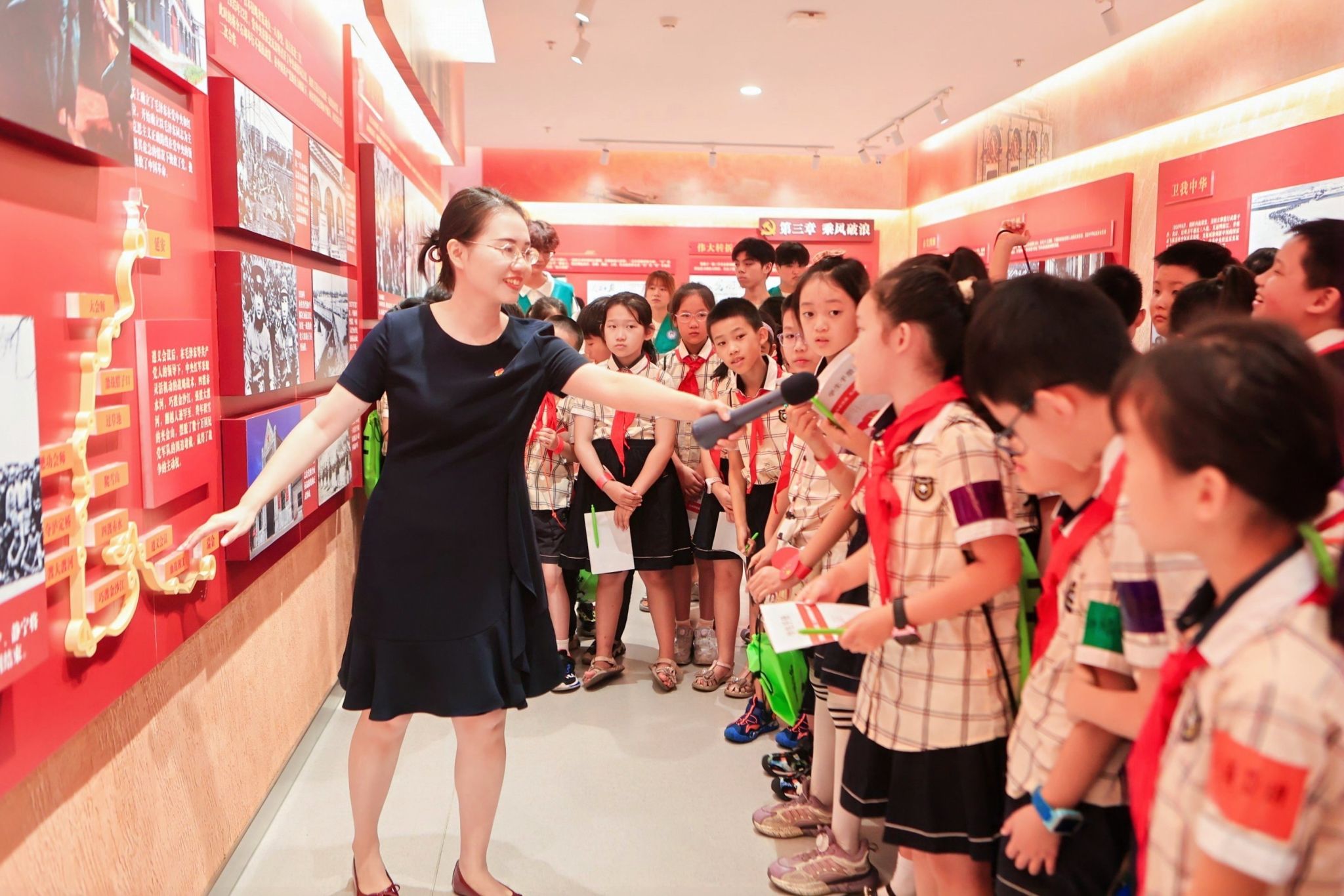 【参观红色展馆,重温光辉历程】中国共产党成立初期,经历了哪些艰难的历程?中央红军长征最为惨烈的战役是哪一场?标志广西全境解放的时间和事件是什么?带着问题,小朋友们走进党史馆,与黄哲和甘麒燕两位老师一起互动交流。通过生动的语言和详实的历史资料,两位老师向孩子们讲述自中国共产党建党以来几代人筚路蓝缕艰苦奋斗的伟大征程,激发孩子们爱国爱党的热情。听完讲解,两位老师精心设计了红色知识探秘环节。孩子们带着问题,在各场馆内自由寻找答案,互动式的学习方式不仅激发了孩子们的学习兴趣,也让他们更加主动地参与到研学活动中来。