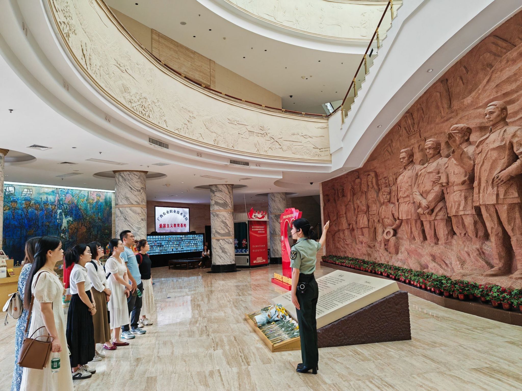 27日上午,党员们来到百色起义纪念馆。纪念馆主要展示了邓小平、张云逸、韦拔群等老一辈无产阶级革命家领导百色起义这一重大历史事件,通过丰富的文物、史料和照片,生动再现了起义的壮阔场面和英雄人物的英勇事迹。在讲述红七军战士们佩戴的红领巾带和红袖标时,讲解员一度哽咽,只因红领带和红袖章上绣着战士们的个人信息,若战士们不幸牺牲,请求把红领带和红袖章带给自己的亲人……听到这里,在场的党员们也无不动容,被革命先辈们的英勇无畏和坚定信念所深深感染。