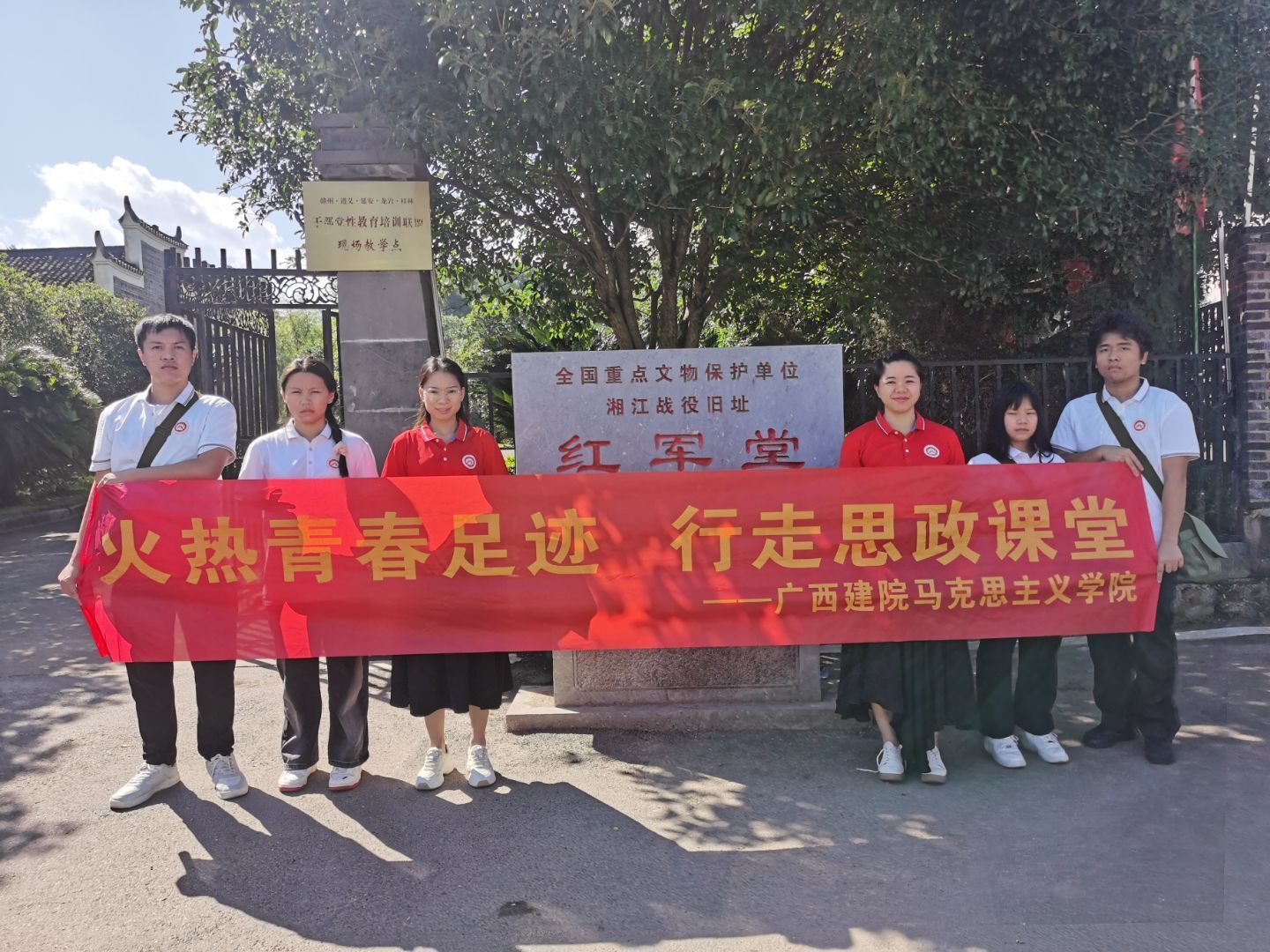 本次红色夏令营活动是由职业院校红色文化育人共同体主办、由多所红军长征主要出发地、途径地共同体院校承办的一个全国性师生重走红军长征路的红色走读实践研修活动,伟德国际官网马克思主义学院刘荔源、唐海莲两位教师带领4名青马协会学生代表参加了突破湘江主题营,开展了一堂赓续红色血脉、富有特色创新的行走思政课堂。