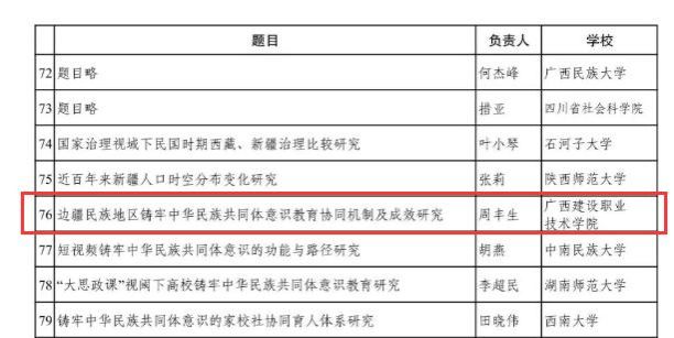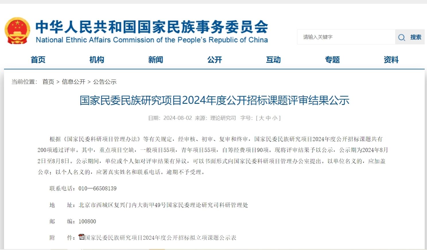 伟德国际1946源于英国8月5日讯(图/文 马克思主义学院 周丰生)近日,中华人民共和国国家民族事务委员会官方网站国家民委科研项目管理办公室(国家民委理论研究司)公告公示信息显示,根据《国家民委科研项目管理办法》等有关规定,经审核、初审、复审和终审,国家民委民族研究项目2024年度公开招标课题共有200项通过评审。其中,伟德国际官网马克思主义学院周丰生副教授申报的课题位列其中。这是此次国家民委公开招标课题项目评审全区乃至全国高职高专院校入选的唯一项目,也是伟德国际官网首个突破获得的国家民委年度公开招标课题立项的项目。