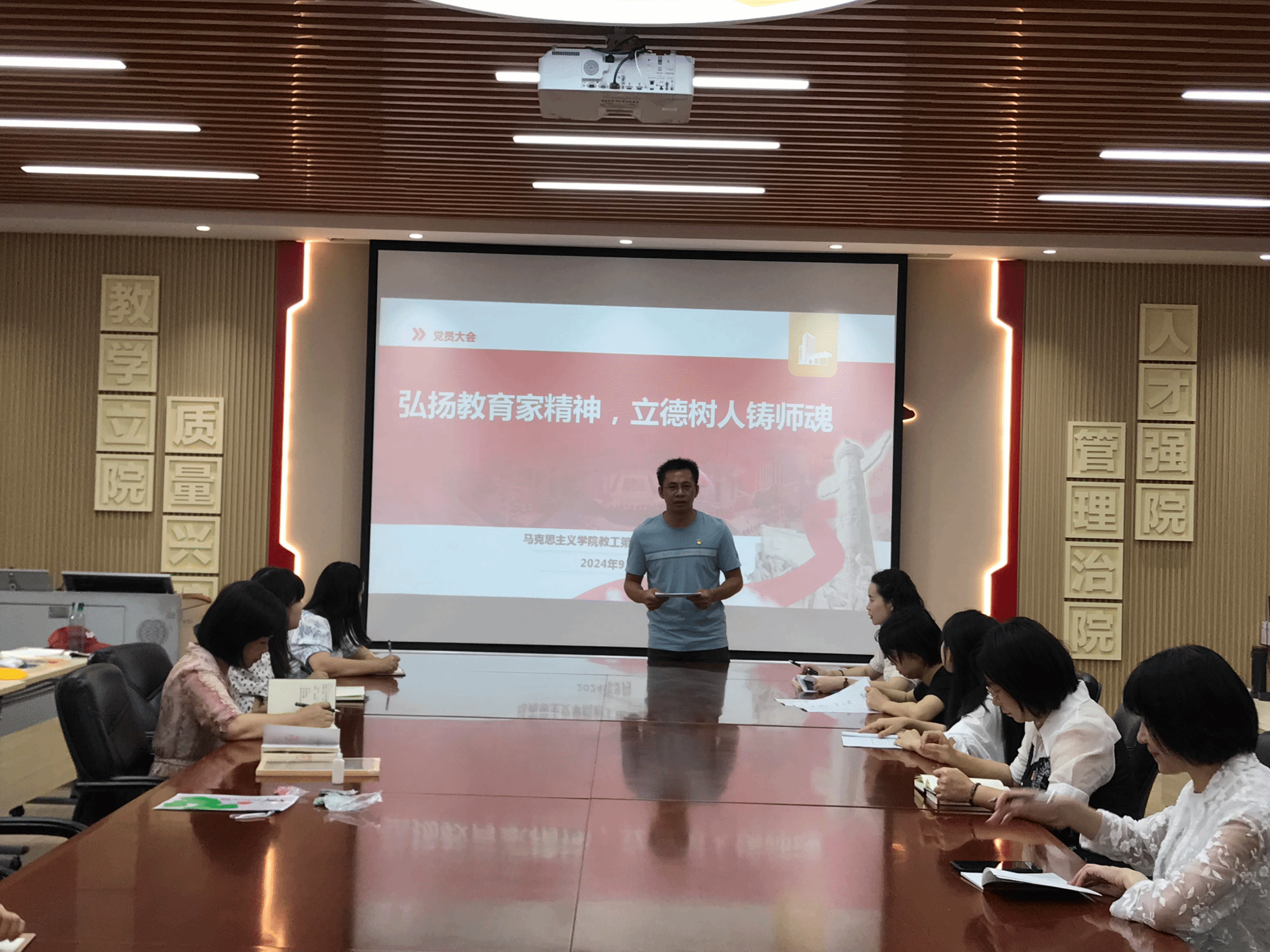 随后,全体党员围绕“弘扬教育家精神,立德树人铸师魂”这一主题展开热烈讨论。大家表示,要深刻领会习近平总书记的重要讲话精神,将教育家精神内化于心、外化于行,为推动教育事业高质量发展贡献自己的力量。