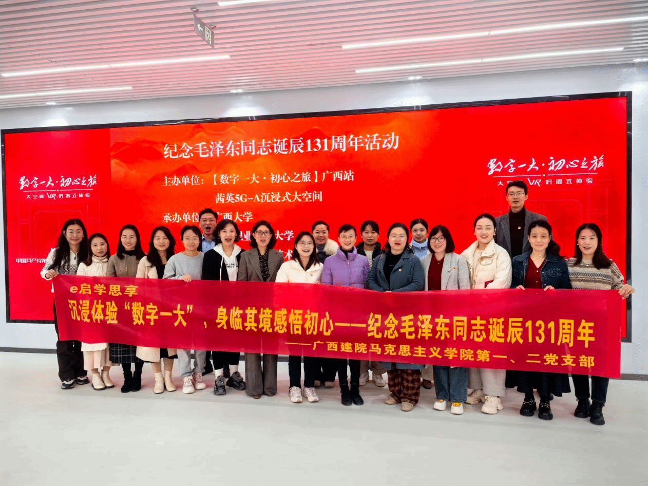 马克思主义学院12月28日讯(图/文 谭臻)2024年12月26日,马克思主义学院教工第一、第二党支部组织党员教师齐聚“数字一大•初心之旅”广西站,开展以“数字一大·初心之旅”为主题的VR沉浸体验红色主题党日活动,沉浸式体验科技与历史完美融合的初心之旅。