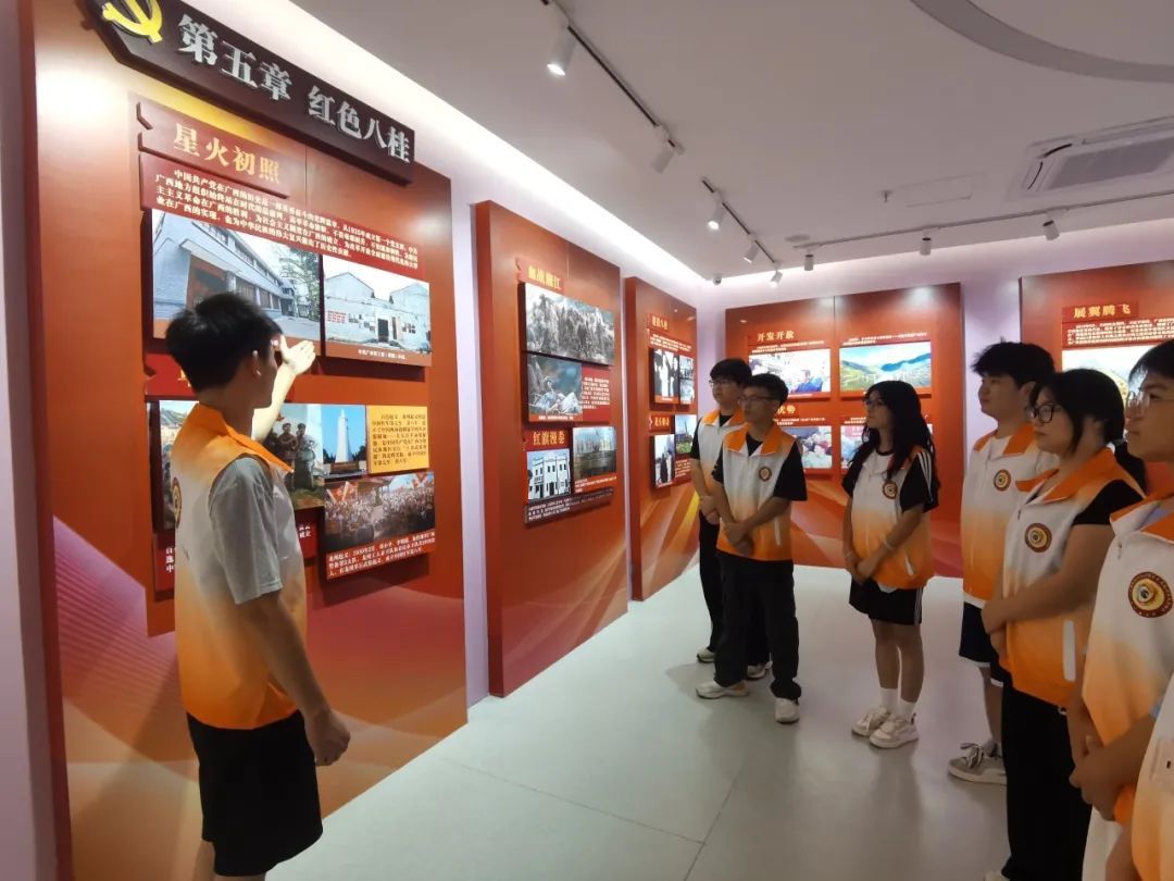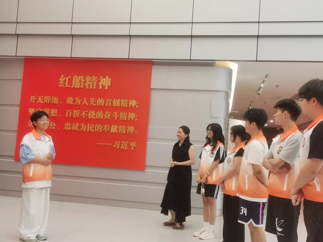 青马协会成员以《红船启航》情景教学为载体,通过再现中共一大历史场景与嘉兴南湖风雨征程,生动诠释“坚持真理、坚守理想,践行初心、担当使命”的伟大建党精神内核。成员主动承担“红色讲解员”职责,充分运用党史馆文献史料与虚拟仿真思政体验系统,借助数字爱国主义教育平台等载体,展现党领导人民从革命斗争到新时代建设的奋斗历程,强化“没有共产党就没有新中国”的历史共识。