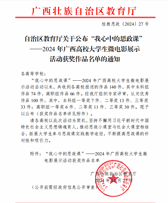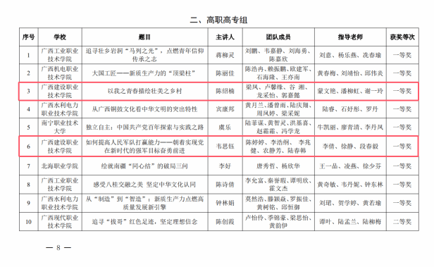 团队教师参加2024年全区高校建设“壮美广西”系列思政课“示范课堂”活动获一等奖1项、二等奖1项、三等奖2项