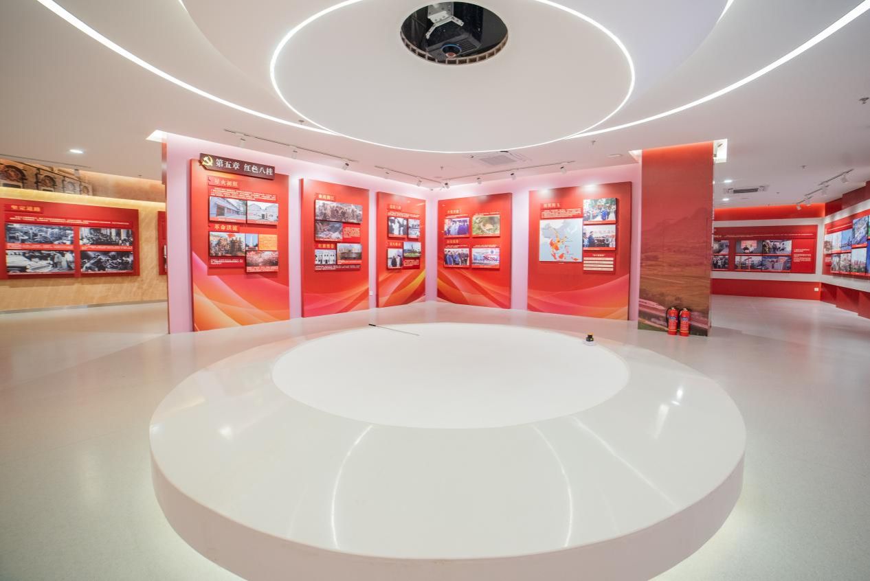 基地以“起承转合”的表现手法串联红船大厅、党史教育馆、虚拟仿真教学中心、360度沉浸式体验馆四大部分。