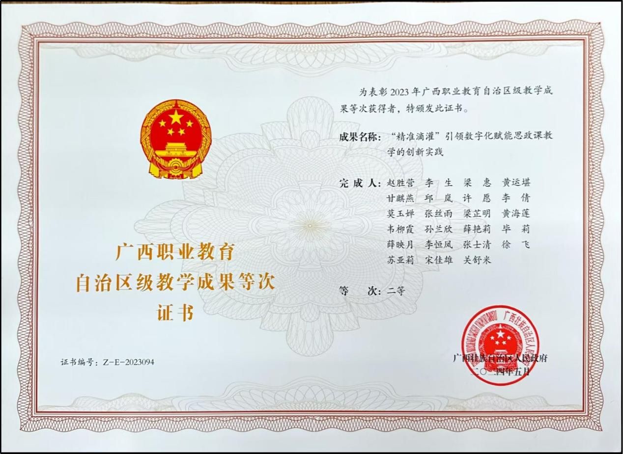 团队教师在2024年全区职业院校教师教训技能大赛课堂教学比赛获二等奖