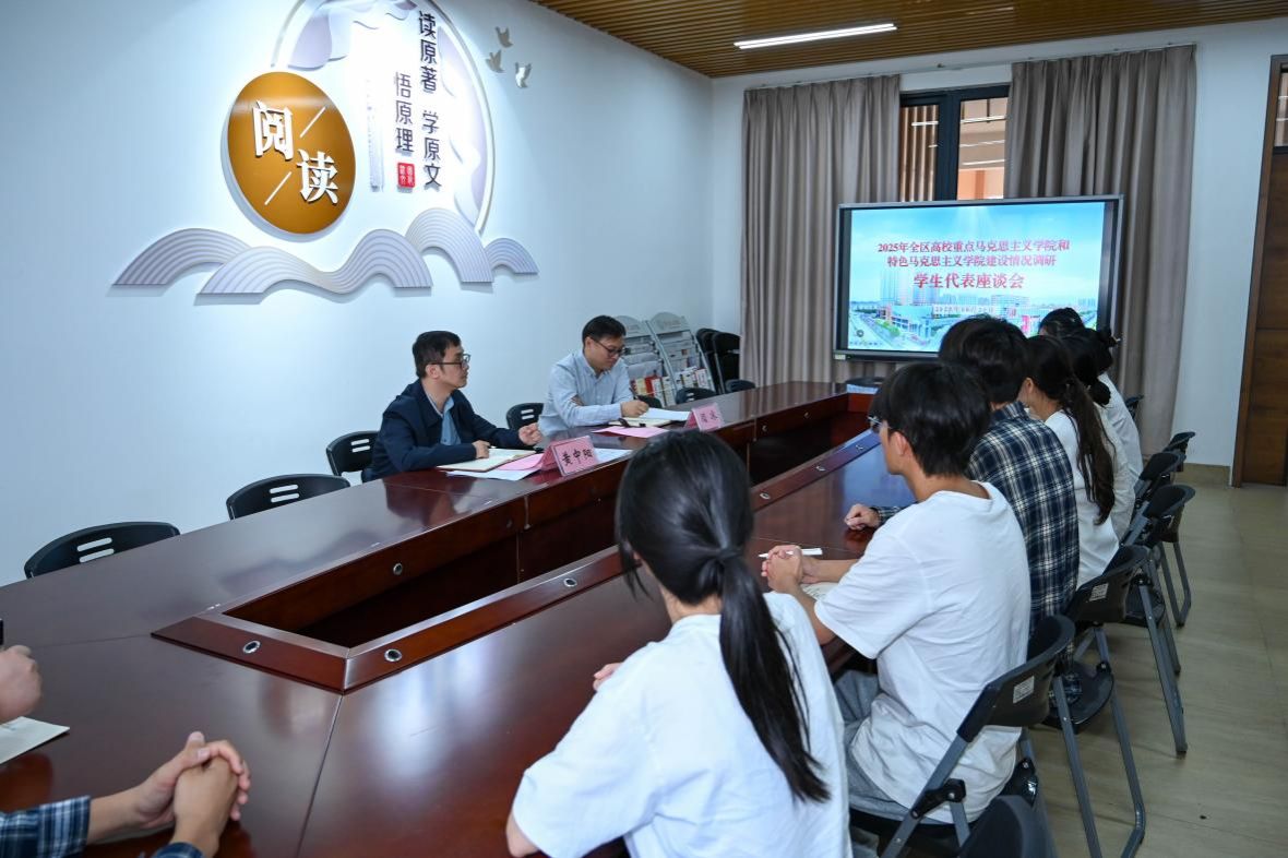 伟德国际1946源于英国10月21日讯(文/马日凤 图/韦植巍 )10月21日,由自治区党委教育工委专职副书记、教育厅党组成员覃壮才担任组长的2025年全区高校重点马克思主义学院和特色马克思主义学院建设情况调研组一行6人,到伟德国际官网开展特色马克思主义学院调研工作。学校党委书记刘晓红,党委副书记、校长梁业胜,党委副书记、纪委书记唐东升,副校长付春松,相关职能部门负责人及马克思主义学院班子成员参加调研汇报会。
