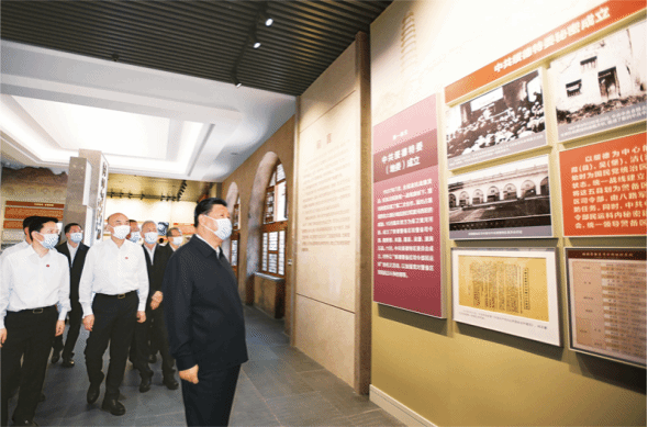 2021年9月13日至14日,中共中央总书记、国家主席、中央军委主席习近平在陕西省榆林市考察。这是14日上午,习近平在中共绥德地委旧址考察。 新华社记者 李学仁/摄