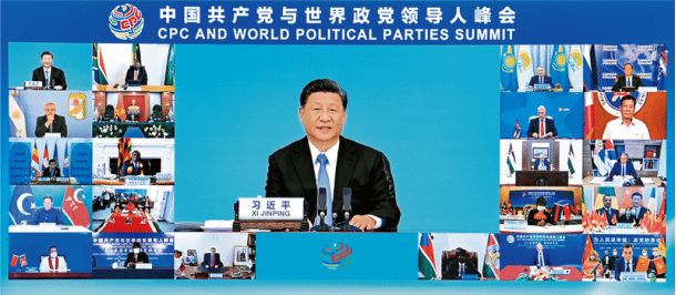 2021年7月6日,中共中央总书记、国家主席习近平在北京出席中国共产党与世界政党领导人峰会并发表主旨讲话。 新华社记者 李响/摄