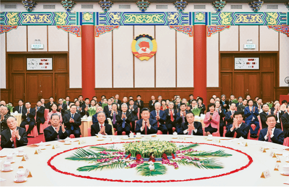 2021年12月31日,全国政协在北京举行新年茶话会。党和国家领导人习近平、李克强、汪洋、王沪宁、赵乐际、韩正、王岐山出席茶话会并观看演出。 新华社记者 燕雁/摄