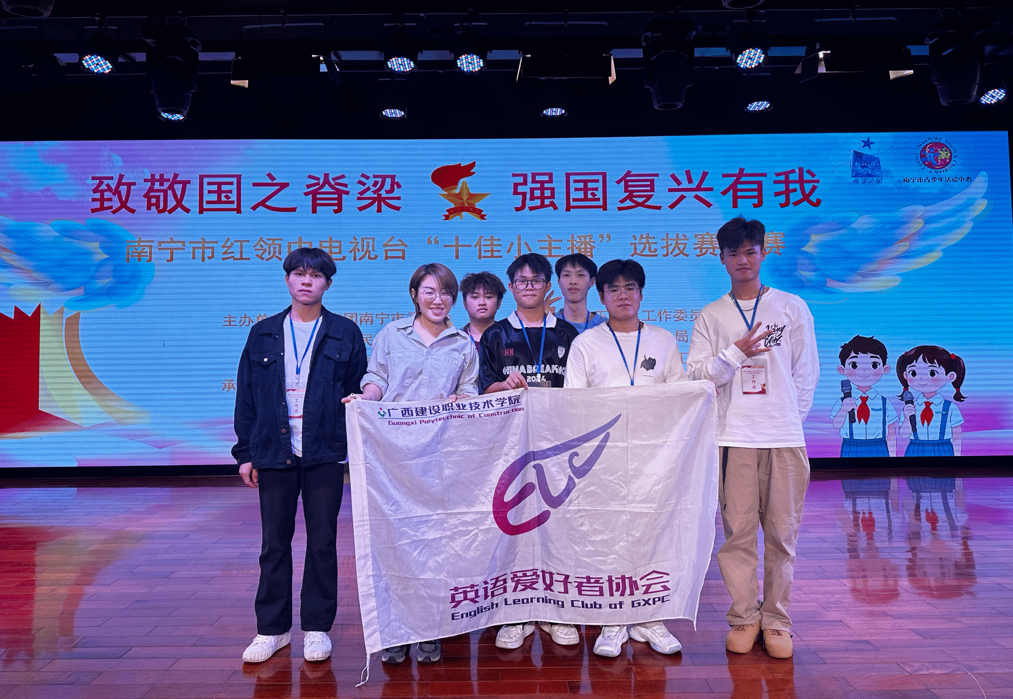 2024年11月9日至10日,人文学院英语教研室曾妍老师带领建院英协叶俊东、刘宝明、周忠昱、莫金明、陈育强、潘祖升六名同学参与了南宁市青少年活动中心第三十一届“希望之星”青少年文化艺术节南宁市红领巾电视台“十佳小主播”选拔赛初赛志愿活动。