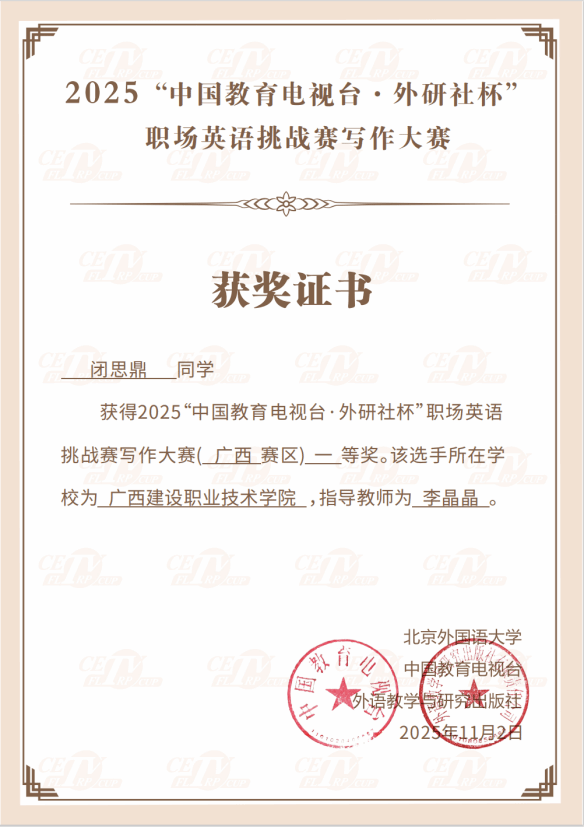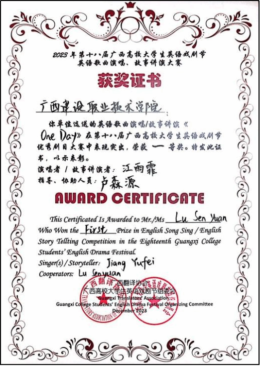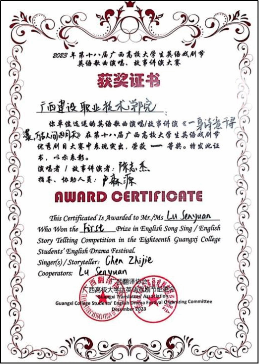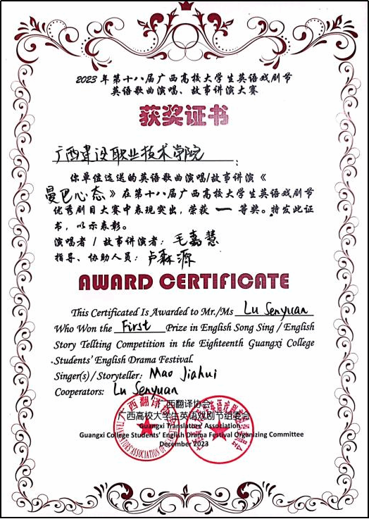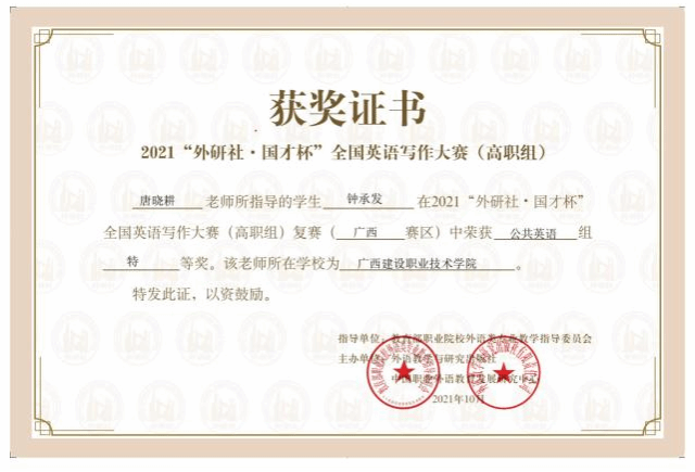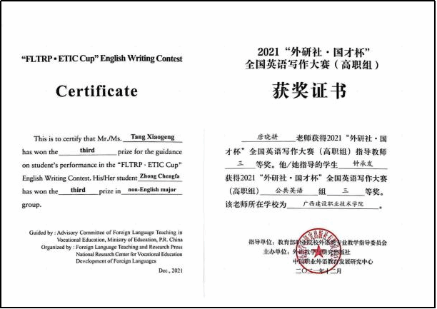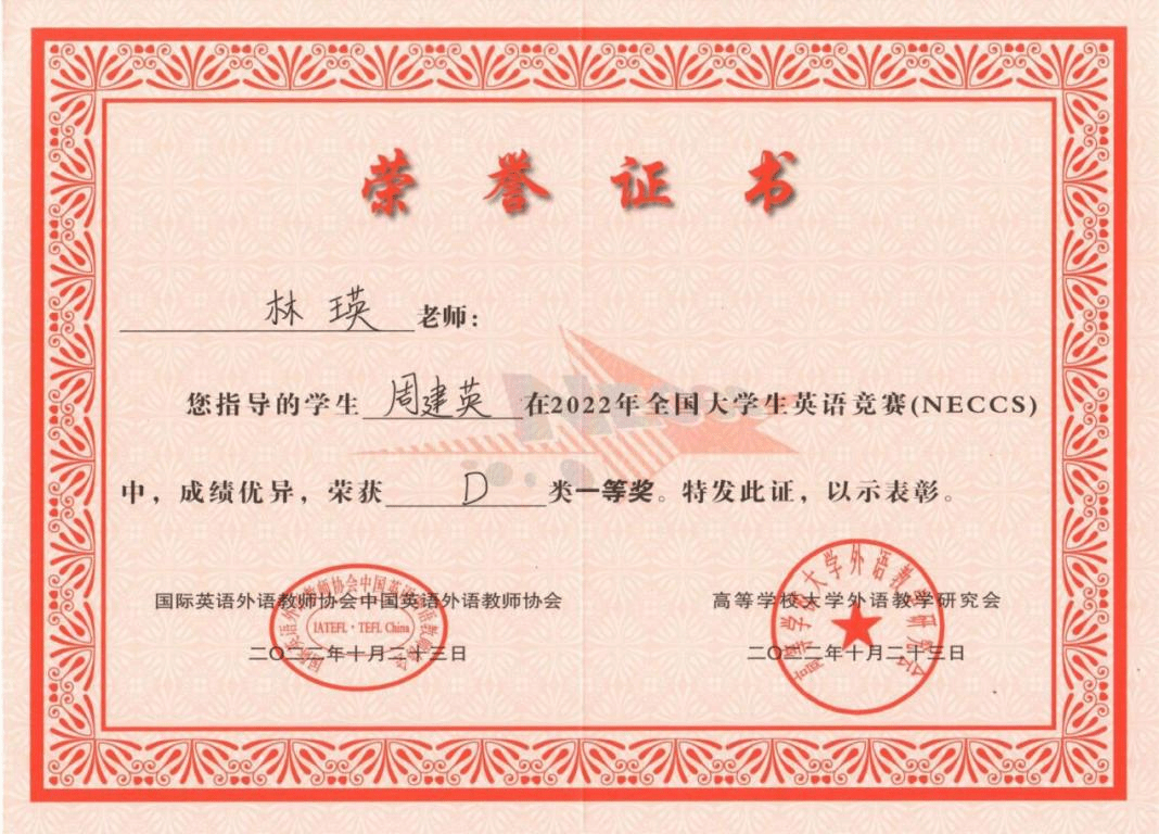 学生竞赛:指导学生参加全国大学生英语演讲比赛、写作比赛、翻译比赛等,多次荣获佳绩,展现了我院学生的英语水平和综合素质。