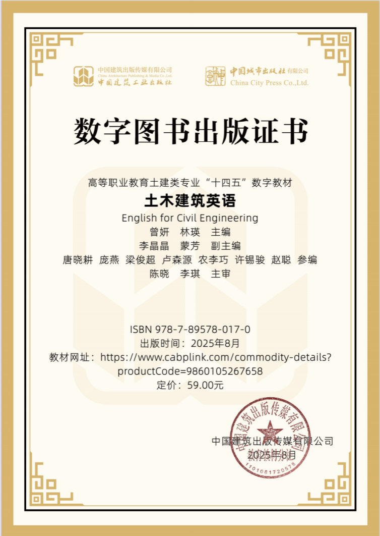 (二)主编教材《土木建筑英语》——高等职业教育土建类“互联网+”活页式创新教材