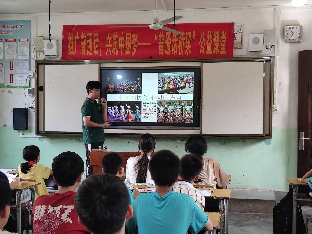 在“普通话桥梁”公益课堂中,实践团以“推广普通话 弘扬爱国情”为内容主线,开展普通话知识讲解、文化知识竞赛、绕口令、红色经典诗歌朗诵、歌曲表演、猜字谜等一系列丰富多彩的语言文字趣味活动,为小学生们带来了一次别开生面的普通话知识推广盛宴。孩子们积极参与,课堂气氛活跃,生动有趣,进一步帮助小学生们增强说好普通话的意识,提高语言文字实际应用能力。