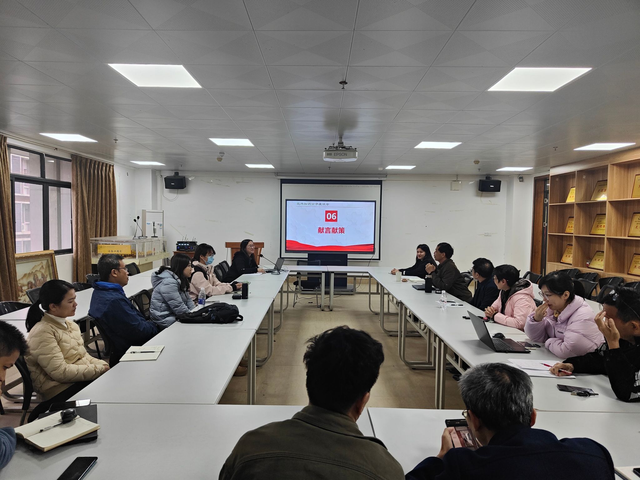 领学完《中国共产党统一战线工作条例》后,侯文淑书记召集与会人员进行了座谈,学院老师们纷纷就学校和学院发展过程中遇到的重点难点问题发表了自己的意见和建议。