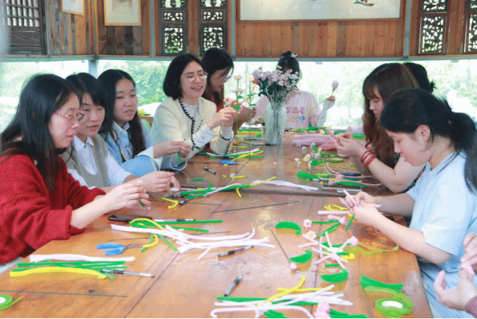 接着,工会小组的成员们展示了各自的歌唱才华,现场气氛热烈,掌声不断。大家以歌会友,增进了彼此的了解和友谊。随后是手工扭扭花和美甲制作环节,老师们在欢乐中感受美、创造美,享受生活的乐趣。