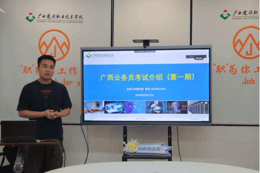 黄琨老师首先介绍了广西公务员考试等公职类考试的相关知识,涵盖报考条件、职位选择、考试内容、备考策略四个方面,对广西公务员考试的基本内容进行了详细指导,鼓励同学们有规律有计划地积极备考。同时,他还结合公务员考试的竞争比以及近期就业的严峻形势,提出了合理的备考建议,希望大家选择合适的职业方向,确立职业目标。