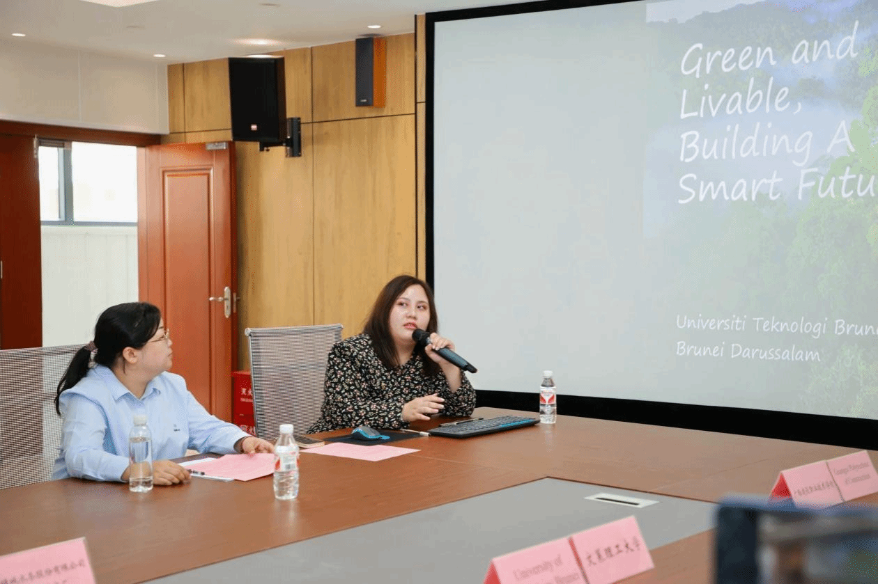 在东盟国家代表分享环节中,柬埔寨理工学院教师Ket Pinnara介绍了其校城市工程与卫生工程专业的设立背景和课程设置安排等。她表示,该专业致力于培养具备实践能力和创新精神的工程人才,为柬埔寨的城市建设和发展贡献力量。文莱理工大学学生Jaicquailina Venessa Anak Ujai分享了文莱在打造创新宜居环境方面所采取的措施,并通过案例展示了文莱在可持续绿色项目、可持续生活及废物管理计划和碳减排政策方面的创新实践,为与会人员提供了宝贵的经验和启示。柬埔寨国家技术学院学生Rin SreiReath则围绕“绿色宜居与共建智慧未来”主题进行分享,探讨了如何将绿色理念融入智慧城市建设,以增强城市品质和居民生活的幸福感。越南水利大学学生Nguyen Ha Giang也分享了关于绿色建筑方面的专业知识和实践经验,阐述了越南在绿色建筑的具体做法,强调了绿色建筑在推动绿色城市建设中的重要作用。