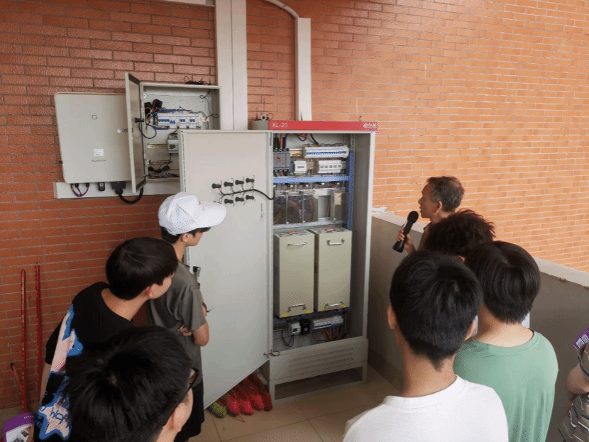 1号教学楼“光储直柔”建筑项目是集光伏发电、储能、直流配电、柔性用电于一体的“光储直柔”新型能源系统,降低了自身的碳排放量,实现了能源的绿色、高效利用。在活动过程中,设备与环境学院韦宇老师带领同学们依次参观了:屋顶的太阳能光伏发电装置;形式简单、易于控制、传输效率高的直流供电系统;能够实现建筑用电的自我调节和自主优化的柔性用电管理系统;系统中配置的储能装置以及停车场的充电桩。通过耐心详细的讲解,使学生们了解“光储直柔”新能源系统即是将四种技术:“光”—太阳能光伏技术、“储”—储能技术、“直”—直流技术、“柔”—柔性用电技术相结合,相互叠加、整合利用,实现建筑节能低碳运转,光伏发电使每栋建筑都成为绿色“发电厂”。该次体验活动,带来了良好的职业教育体验以及良好的专业教育效果。