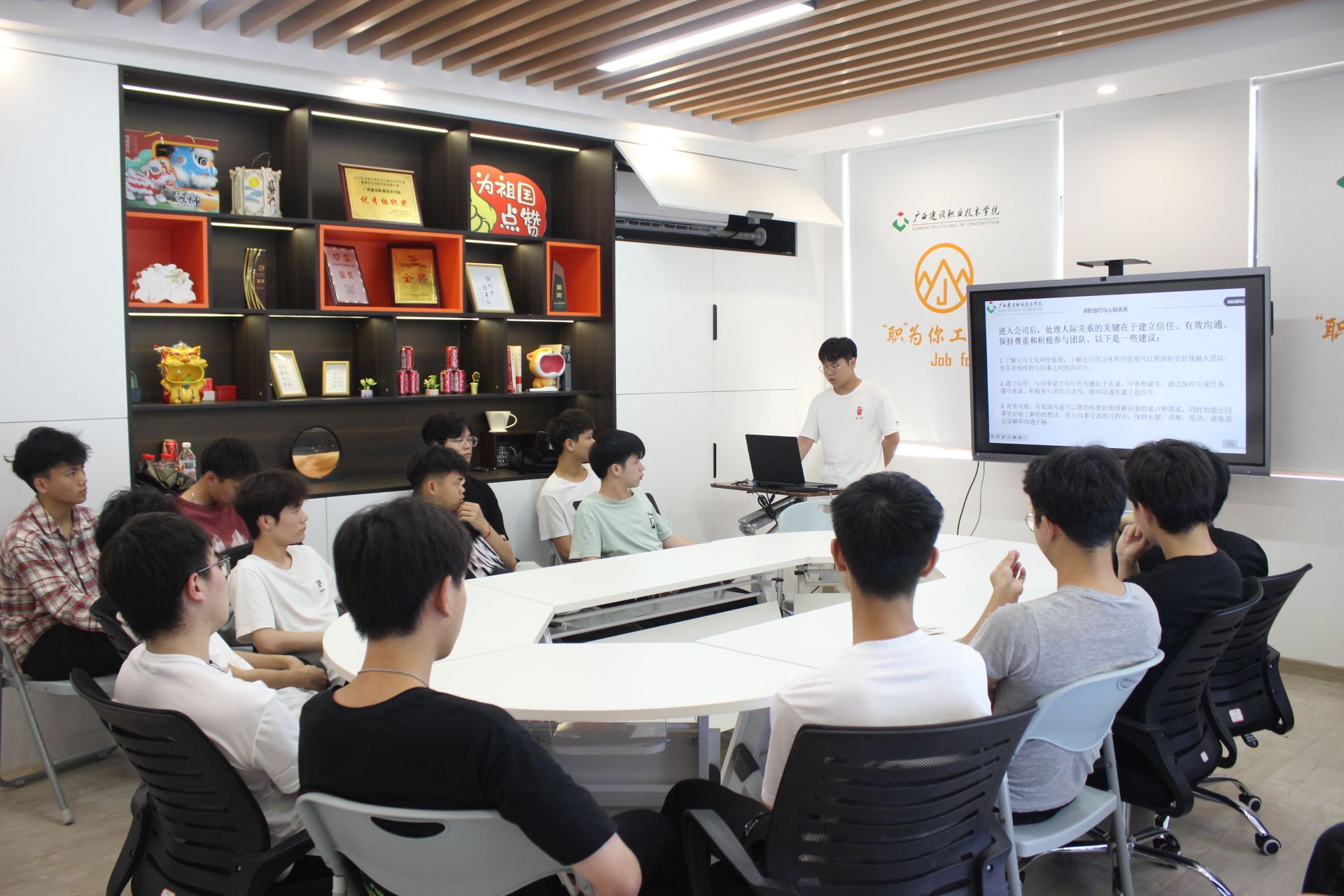 伟德国际1946源于英国设备与环境学院4月18日讯(文/尹显洋、贤冰冰 图/李承宏)为帮助同学们在面对未来的职场生涯时有更明确的目标和更清晰的思路,为他们提供实用的就业指导和支持,“职”为你工作室于4月16日开展“学长学姐”说系列活动之“不负青春,勇往‘职’前”主题交流会。建筑设备工程技术专业2020级学生陈龙涛作为本次活动的分享交流嘉宾,我院二十余名学生积极参与。