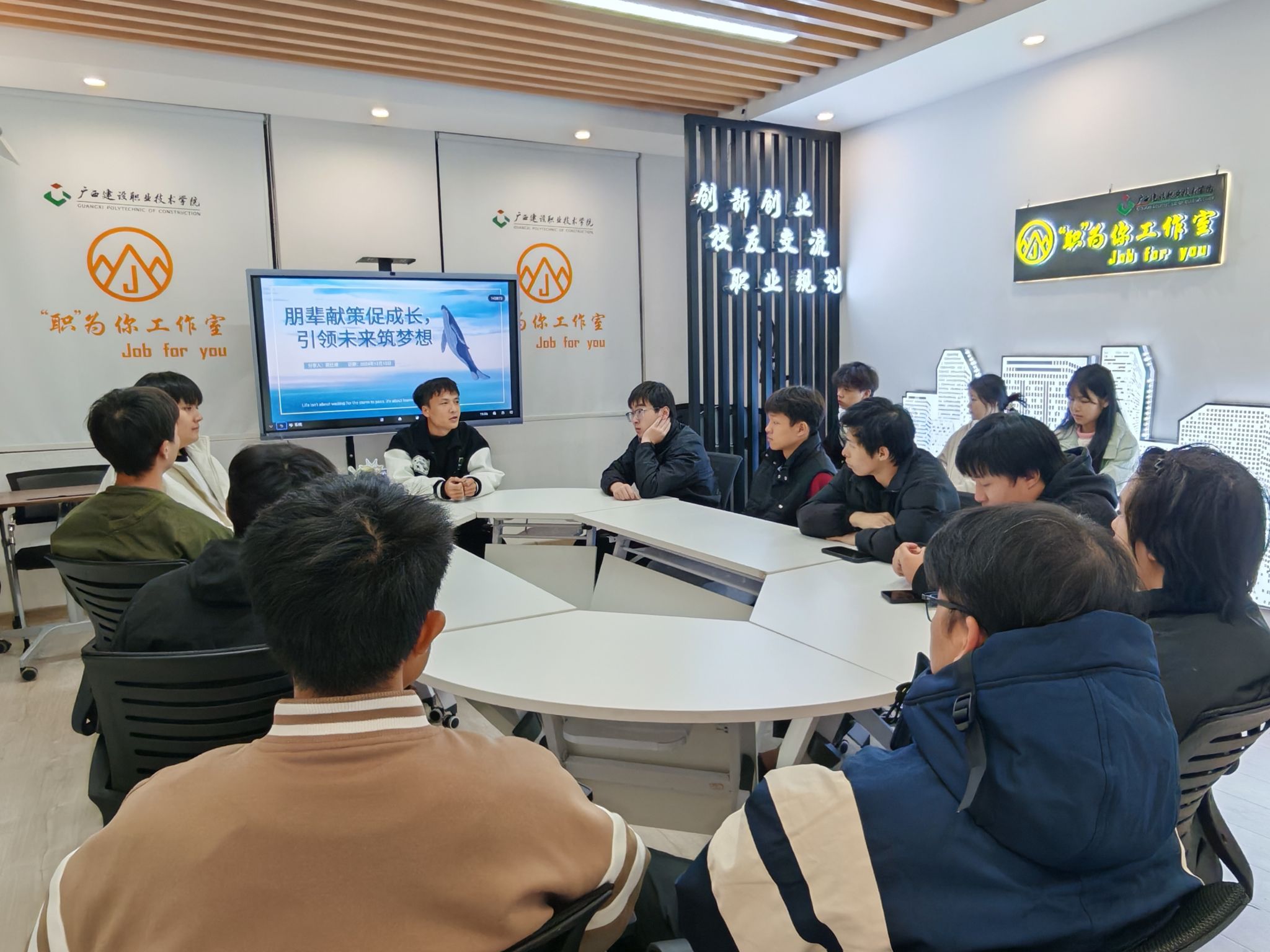 伟德国际1946源于英国设备与环境学院12月16日讯(文/尹显洋 贤冰冰 图/贤冰冰)为进一步发挥伟德国际官网优秀学生的榜样引领作用,搭建思想交流平台,激励学生们树立远大目标,伟德国际官网“职”为你工作室于12月15日开展“学长学姐说”系列活动之“朋辈献策促成长,引领未来筑梦想”主题交流会。建筑电气工程技术2020级学生梁仕增作为本次活动的分享交流嘉宾,我院十余名学生积极参与。