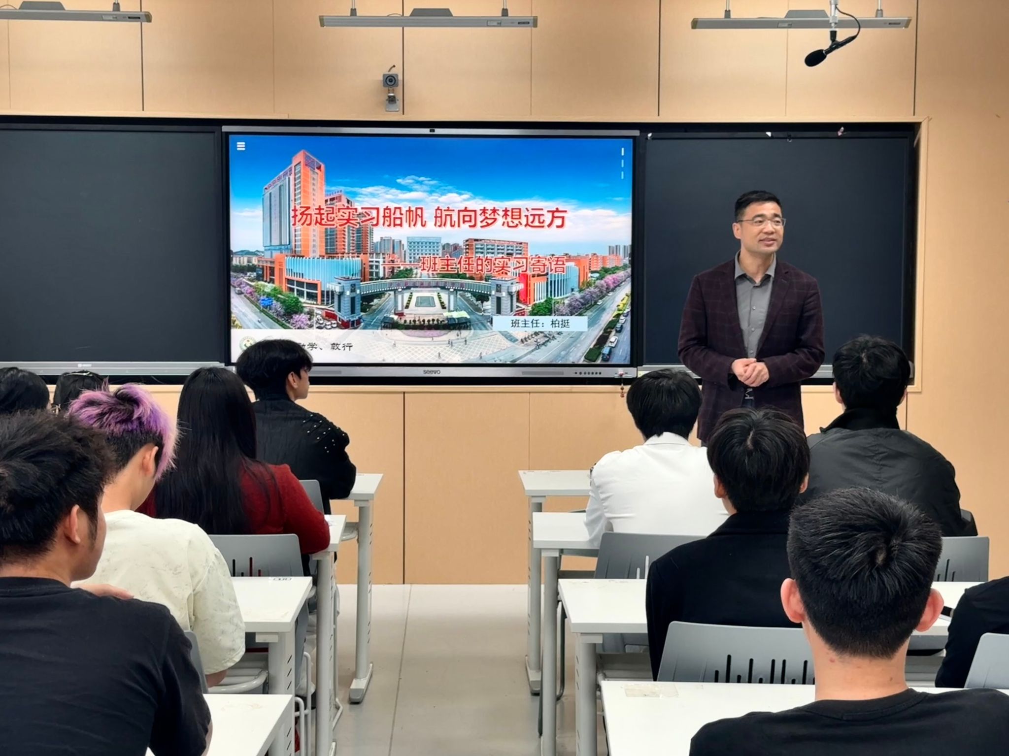 班会上,柏挺副校长结合自身丰富的教育管理经验与行业洞察,为同学们剖析了专业实习的重要性。他指出,实习是连接理论知识与工程实践的桥梁,是同学们从校园迈向社会的关键一步。围绕 “如何高质量完成实习” 这一核心,柏副校长向同学们提出了三点殷切期望:一是要转变角色,主动融入,尽快从学生心态调整为职场心态,虚心向企业导师和同事请教;二是要勤于思考,知行合一,将在校所学的理论知识大胆应用于实际工程,在解决复杂问题中提升综合能力;三是要严守纪律,安全第一,严格遵守实习单位和学校的各项规章制度,始终将安全生产与个人安全放在首位。他勉励全体同学,要珍惜此次实习机会,在广阔的实践天地中乘风破浪,为实现梦想筑牢坚实基础。