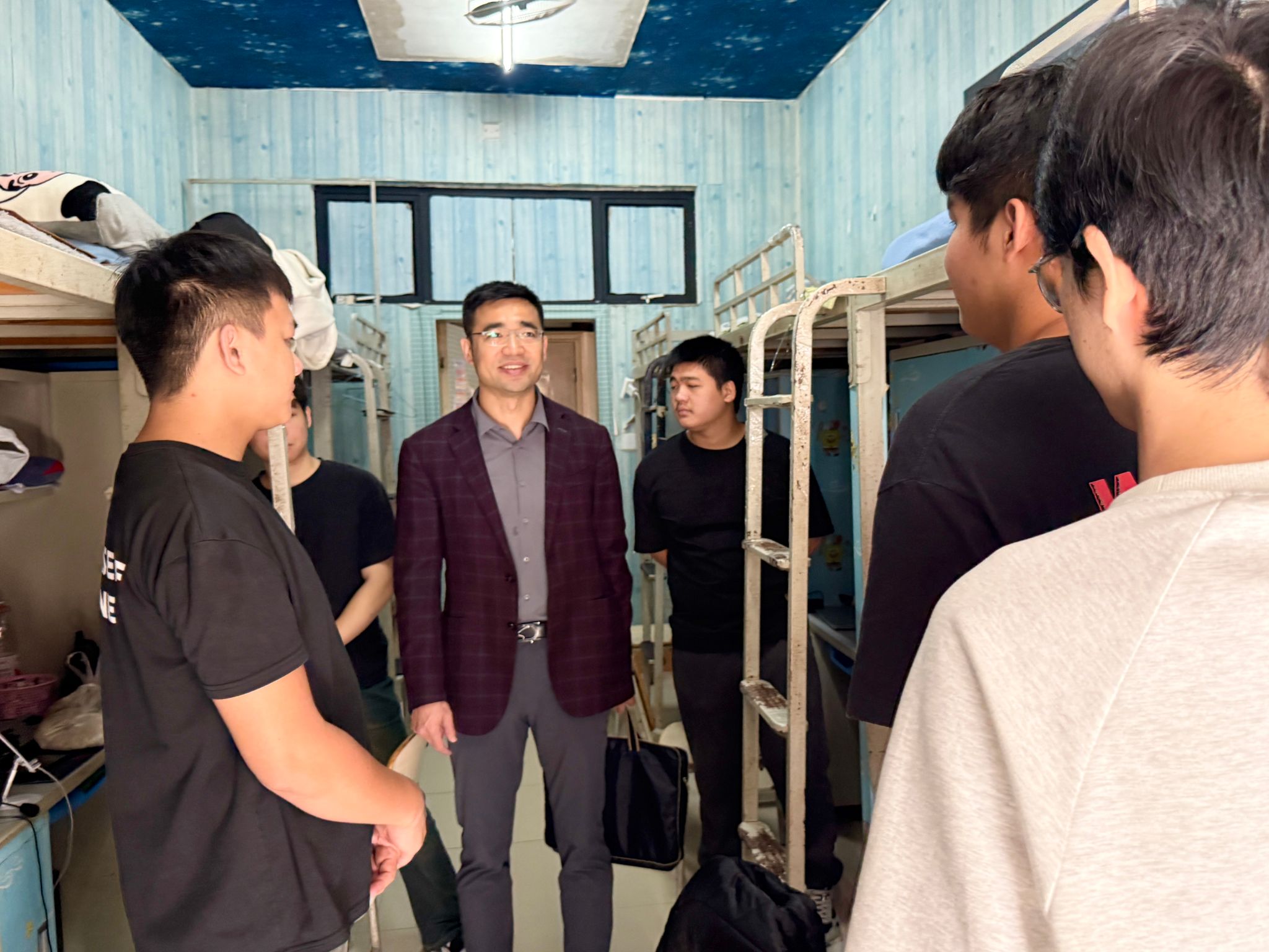 班会结束后,柏挺副校长带队前往学生宿舍检查走访,仔细查看住宿环境、卫生状况及安全隐患,详细询问大家的实习准备进度、生活需求及遇到的困难。他叮嘱同学们要保持良好的生活作息,注重宿舍安全与团结互助,以饱满的状态投入到实习前的冲刺阶段,同时强调遇到问题要及时与老师沟通,学校将全力为大家的实习与成长保驾护航。