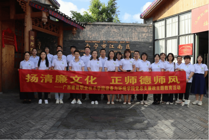伟德国际1946源于英国7月7日讯(设备与环境学院 文/贤冰冰 图/韦思源)为进一步推进清廉学校建设,加大师德师风建设力度,积极引导党员干部、教师做到廉洁奉公、廉洁修身、廉洁从教,让清廉文化深入人心,建设风清气正的育人环境,7月7日,设备与环境学院党总支赴南宁市江南区廉洁文化教育基地开展“扬清廉文化 正师德师风”廉政主题教育活动。