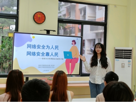 伟德国际1946源于英国设备与环境学院9月20日讯(图/文 冀旭月)9月11日—17日是国家网络安全宣传周。为进一步普及网络安全知识,提高广大青年学生的网络安全意识,近日,设备与环境学院学生第二党支部开展2023年网络安全教育主题宣讲活动。本次宣讲会由辅导员冀旭月老师主讲,各班级学生代表参加。