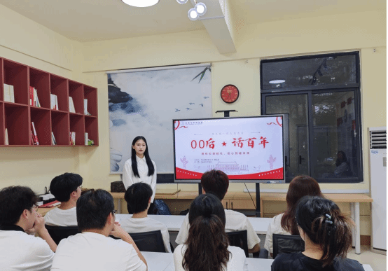活动开始,谭晶晶同学通过讲述全红婵、陈祥榕两位00后的光荣事迹进行切入,结合视频的形式详细介绍了他们的生活点滴、奋斗历程以及爱国大义。一位是激情洋溢的体坛先锋,一位是奋勇厮杀的爱国战士,他们用自己的方式诠释着“00后”这一代的青春气质和爱国力量,为青年树立了光辉的榜样。在最后分享感悟环节,现场的积极分子们纷纷表示要珍惜好时代,拥抱好时代,不负好时代,以坚定理想信念点亮心中的理想之灯,勇担重任做新时代好青年。