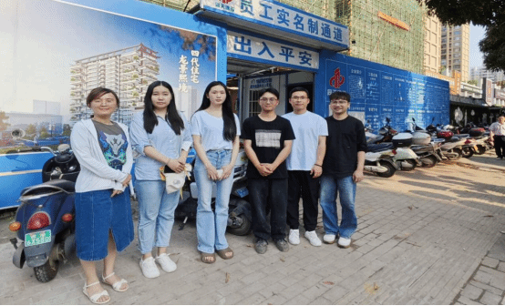 实习指导教师与实习生在广西中旭建筑工程有限公司项目前合影