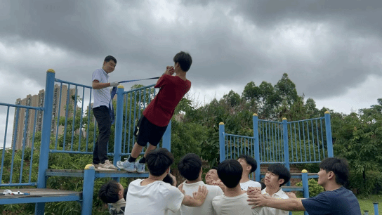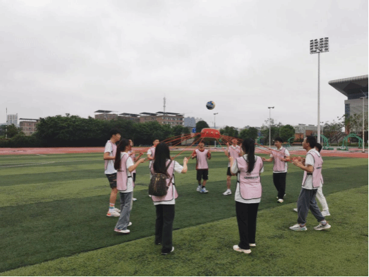 活动开始,由曾祥朋、姜超老师分别讲述各个素拓的环节和规则,带领并指导同学们分成三个小组开展了“猎人老虎枪”“同心鼓”“珠行万里”“梅花桩”“信任背摔”等五个素拓环节。这五个环节最大的共同之处就是要默契配合,团结一致方可达到胜利。游戏过程中,同学们饱含热情,团结一致,秉持着友谊第一,比赛第二的原则,互相配合、共同协作。