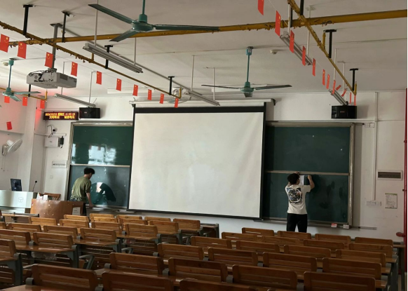 活动开始,在班干们的组织下,同学们分为几个小组进行清洁教室黑板,美化教室环境服务。在活动期间,同学们饱含热情,携带劳动工具,前往各自小组的分工区域进行劳作。大家默契配合,团结一致,仔细擦拭黑板和讲台,不遗漏任何一个角落,重点处理黑板上双面胶的胶痕,整个活动进行得井然有序。