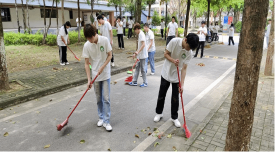 活动开始前,同学们早早带着自己的劳动工具到达现场,个个都兴高采烈的,在班干们的组织下,同学们开始分头行动,各司其职,你拿扫把,我拿铲,不怕累不怕苦。烈日炎炎下,同学们挥汗如雨,对绿化带内的杂草、枯枝落叶以及道路两旁的杂草落叶进行清理。