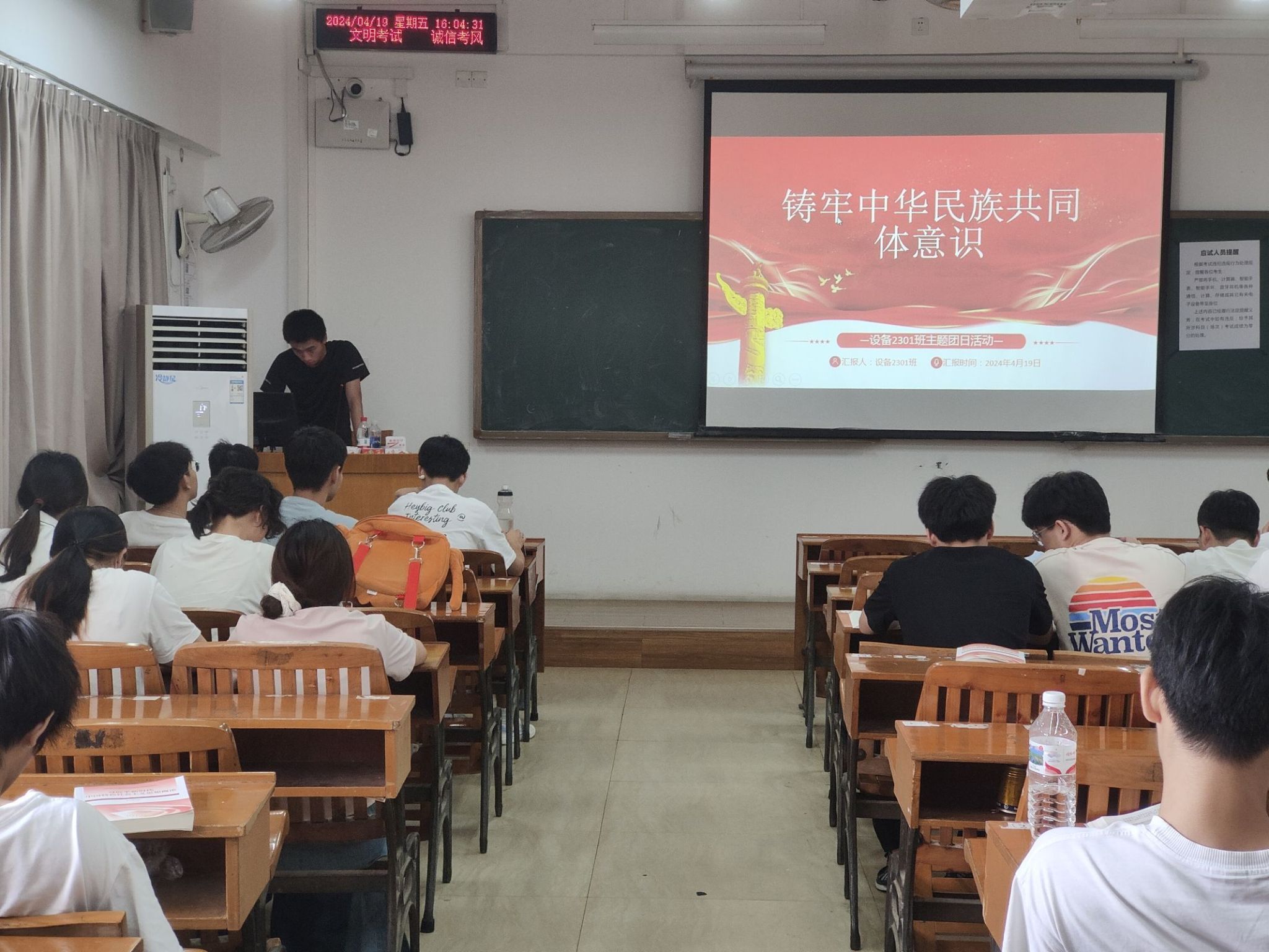 伟德国际1946源于英国设备与环境学院 4月25日讯(文/吴劲涛、曾祥朋 图/梁建聪)为大力弘扬爱国主义精神,加强民族团结进步教育,铸牢中华民族共同体意识,4月19日,设备2301班在一教402召开“铸牢中华民族共同体意识”教育主题班会。