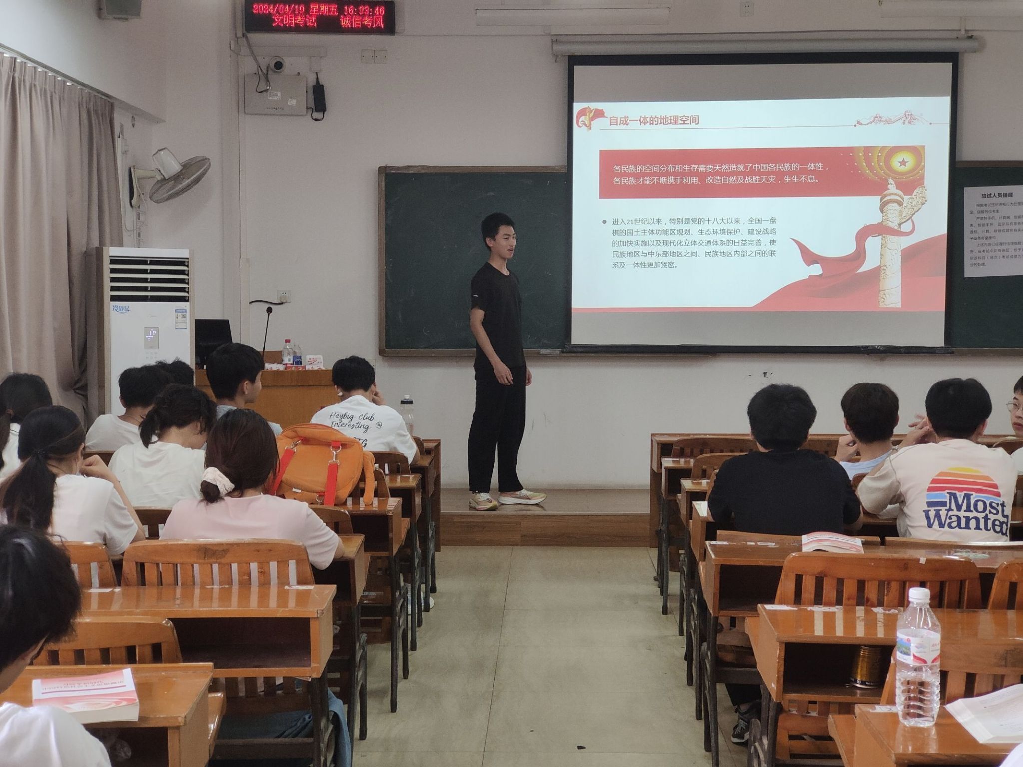 本次主题班会由团支书来主持召开,首先由团支书详细介绍本次班会的主题,让同学们了解到中华民族共同体“政治上团结统一,文化上兼容并蓄,经济上相互依存,情感上相互亲近”的内涵,以及铸牢中华民族共同体意识的重要性。其次,介绍中国共产党的发展历程中有关民族工作的辉煌成就,并为新时代青年的行动提出实践指南。最后,通过学习习近平总书记的讲话精神,带领同学们感悟其中的深刻内涵。习近平总书记强调:“像爱护自己的眼睛一样爱护民族团结,像珍视自己的生命一样珍视民族团结,像石榴籽那样紧紧抱在一起”。通过学习,同学们深刻认识到,中华民族共同体意识是维护国家统一、促进民族团结的思想基础,是推动中华民族伟大复兴的强大精神动力。通过本次主题班会,同学们对“铸牢中华民族共同体意识”有了进一步认识,增强了同学们的民族共同体意识,激发了同学们的爱国情怀和民族自豪感。同学们纷纷表示,将积极践行中华民族共同体意识,以实际行动促进各民族交往交流交融,共同推动铸牢中华民族共同体意识深入人心。
