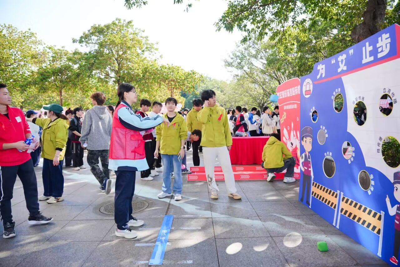 剪彩仪式后,各项互动项目陆续展开。其中,“大转盘选题答题”游戏备受青睐——色彩缤纷的转盘上标注着各类防艾知识题目,涵盖传播途径、预防措施等关键内容。同学们在轻松愉快的游戏中,潜移默化地掌握了重要知识。此外,“防艾知识谣言粉碎机”“圈圈套防艾安全知识”等趣味游戏也吸引了众多参与者。通过这些寓教于乐的形式,大家在欢声笑语中加深了对艾滋病传播机制与防治要点的理解。