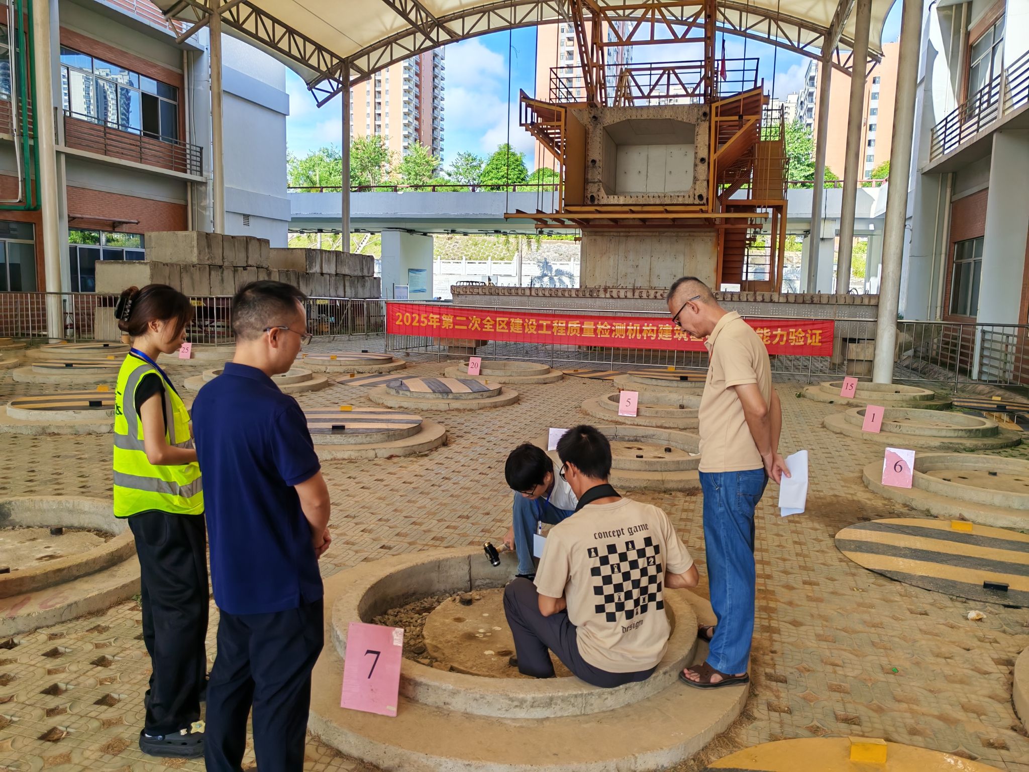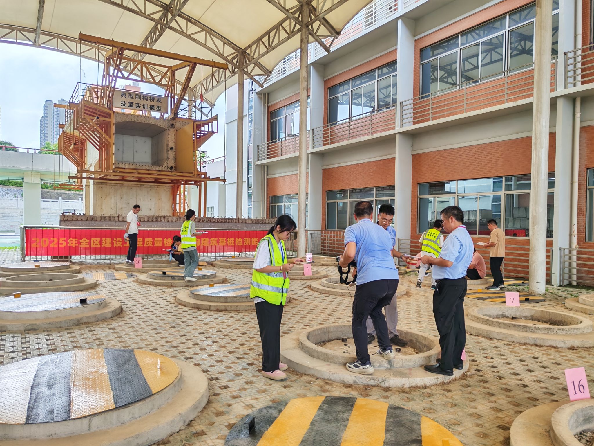 市政与交通学院9月15日讯(图/文 曾庆建)2025年全区建设工程质量检测机构建筑基桩检测能力验证活动,近日在我院桩基及地基检测实训基地顺利落幕。本次验证既检验行业机构能力,更为我院学子搭建了“零距离”对接行业的实践平台。