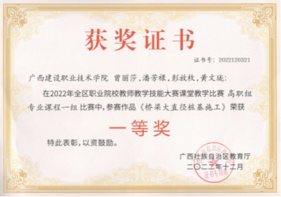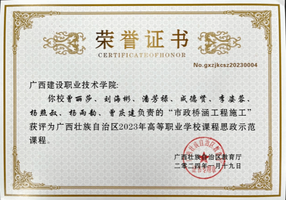 曾丽莎同志曾连续3届担任市政工程专业教学团队负责人,主要参与完成市政工程特色专业及课程一体化建设、市政工程技术示范特色专业及实训基地建设、市政工程技术专业教学资源库等项目的建设,为专业的提质发展奠定坚实的基础,荣获广西住房和城乡建设厅嘉奖、伟德国际1946源于英国党员示范岗等荣誉。
