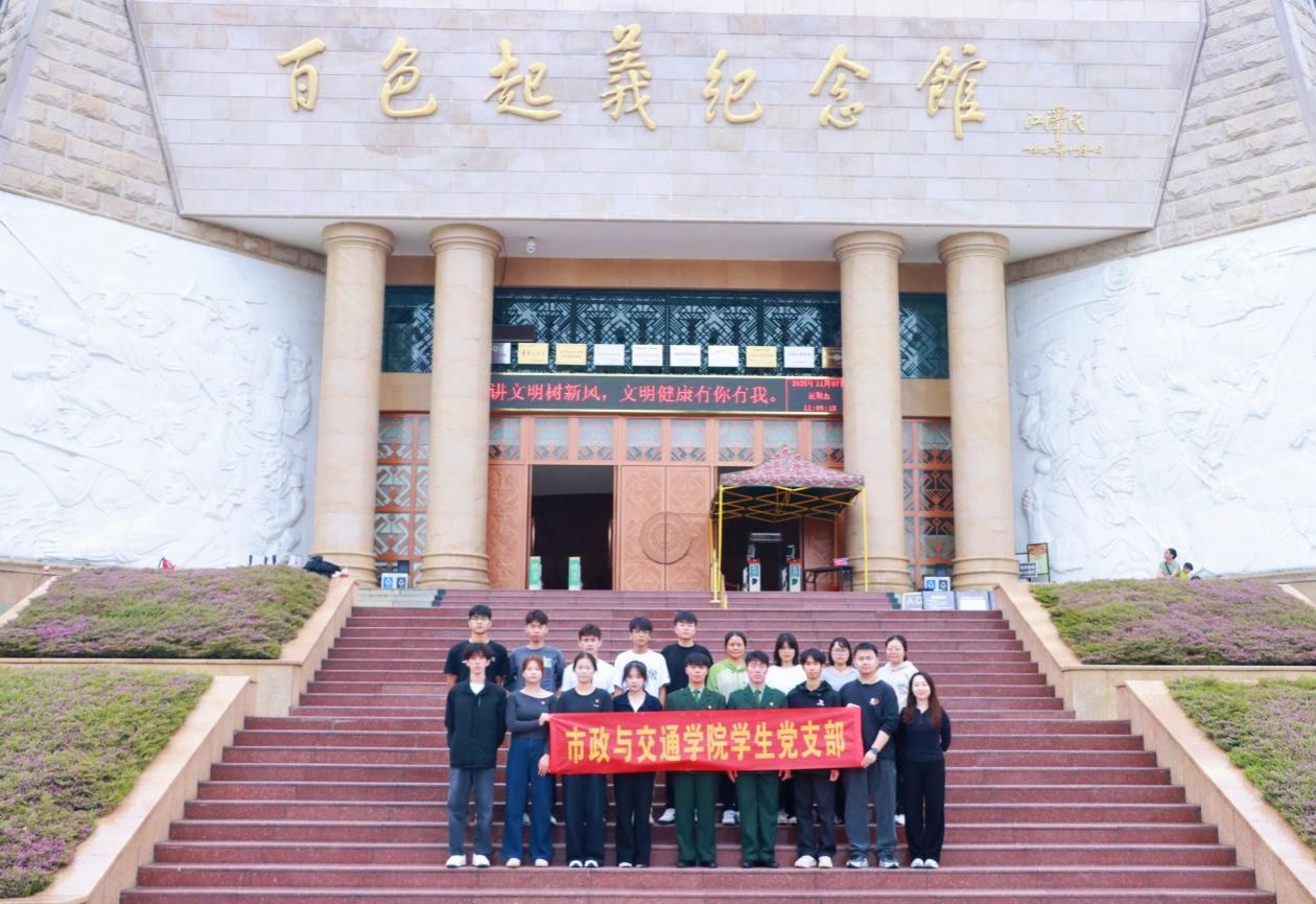 市政与交通学院11月20日讯(文/韦玲玲 图/傅俊涛)近日,市政与交通学院学生党支部组织师生党员和入党积极分子赴百色开展“追寻红色足迹,砥砺初心使命”主题教育实践活动。通过沉浸式学习,全体成员重温革命历史,锤炼党性修养,接受廉政清风洗礼。