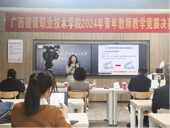 江诗悦老师选取《工程力学》作为参赛内容,围绕“几何不变体系的组成规律”的主题,通过模型探究法、案例教学法等多样化教学手段,将抽象概念通过积木模型具象化,教学环节紧扣动手能力,激发了学生的学习兴趣性与主动性;课堂教学展示中结合真实工程案例分析,将工程安全责任、社会主义核心价值观等融入课堂教学,培养学生的安全责任意识和爱岗敬业精神。