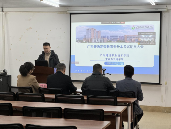 市政与交通学院12月17日讯(图/文 廖欣)为进一步明确备考方向、激发拼搏动力,帮助2023级学子在专升本考试复习阶段坚定信心、高效备考,2025年12月16日,学院以“线上会议”的形式召开2026年专升本考试动员大会。学院党总支书记、副院长刘海彬,副院长黄文珑、靳丽莉,市政工程教学团队带头人潘芳禄,2023级辅导员、全体2023级学生及家长参会,本次大会由黄文珑副院长主持。